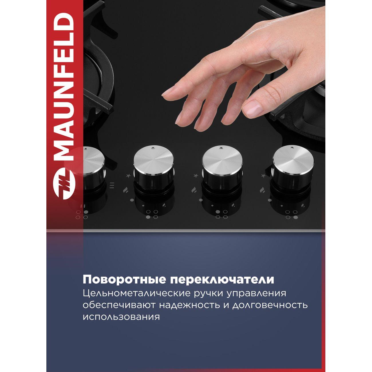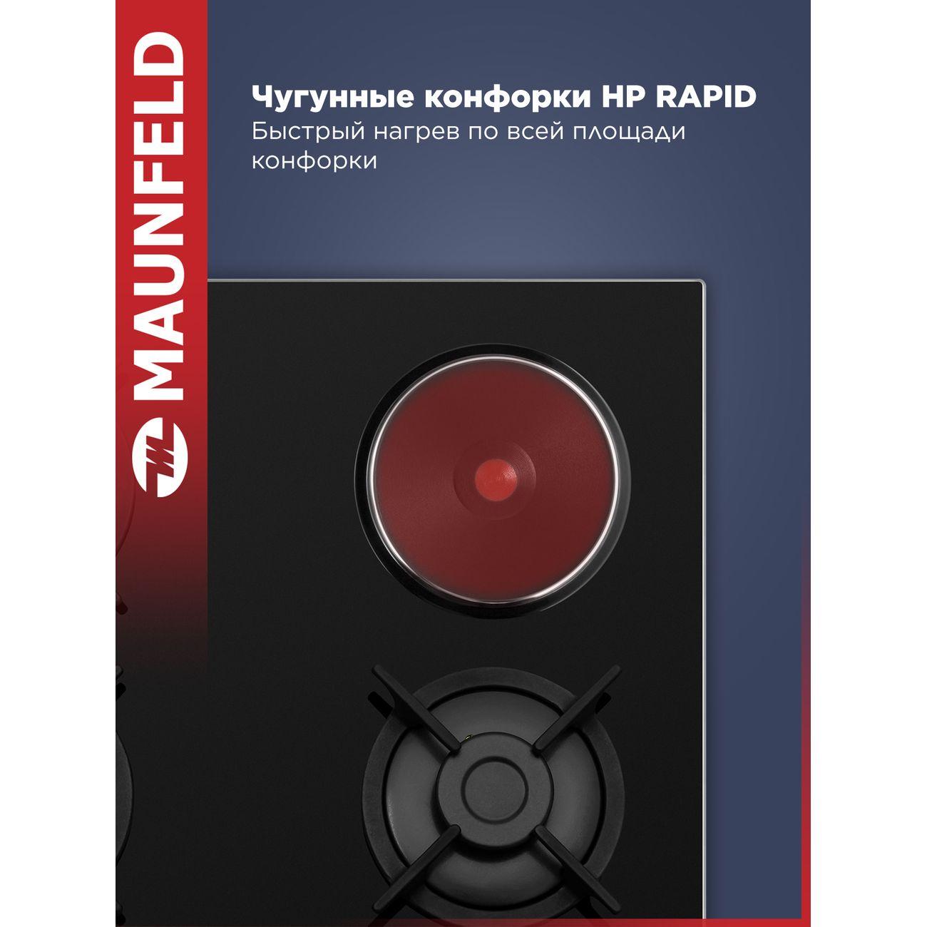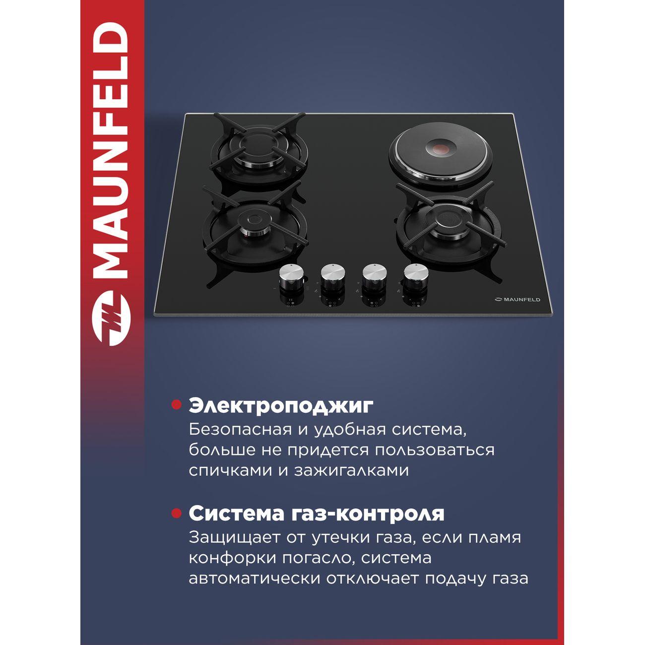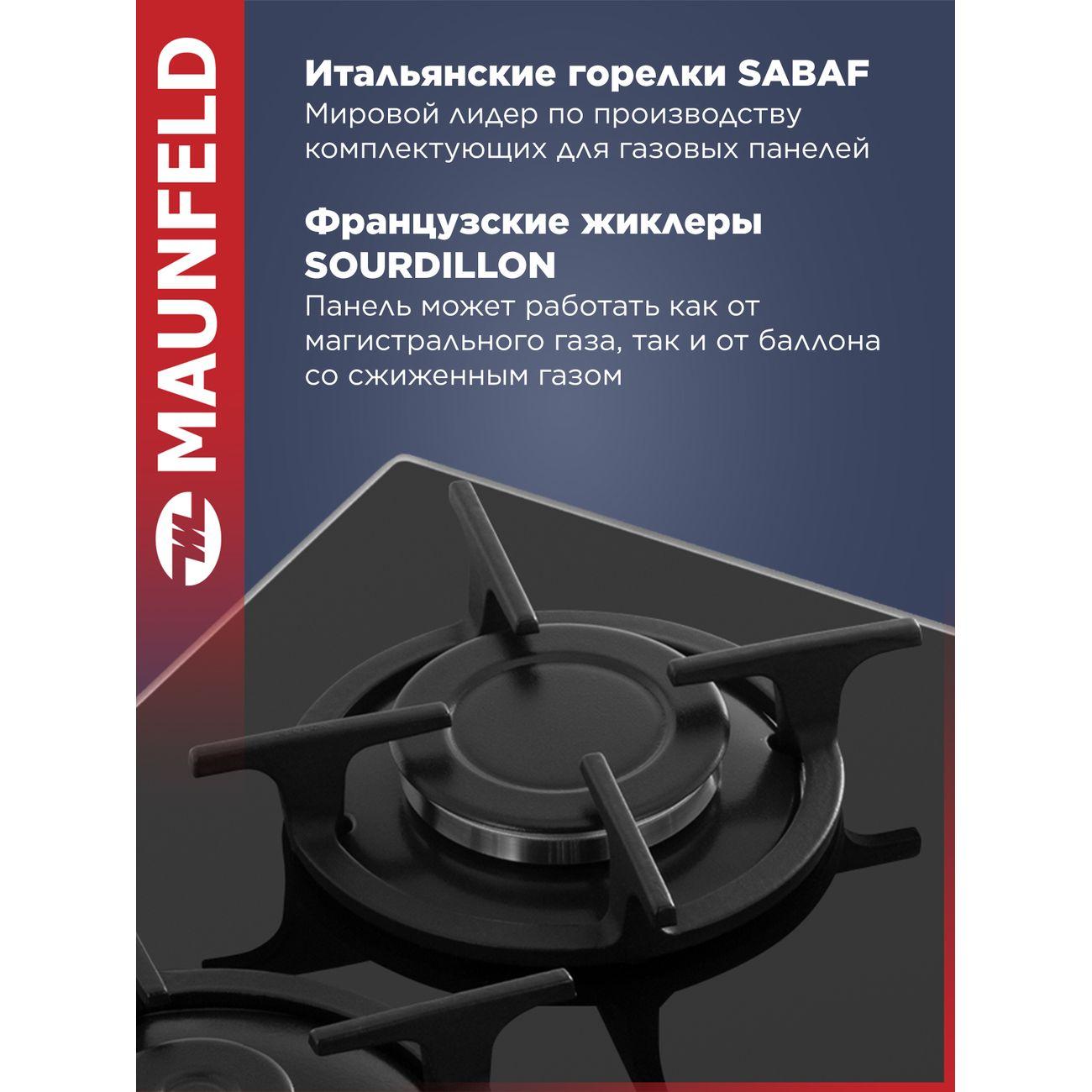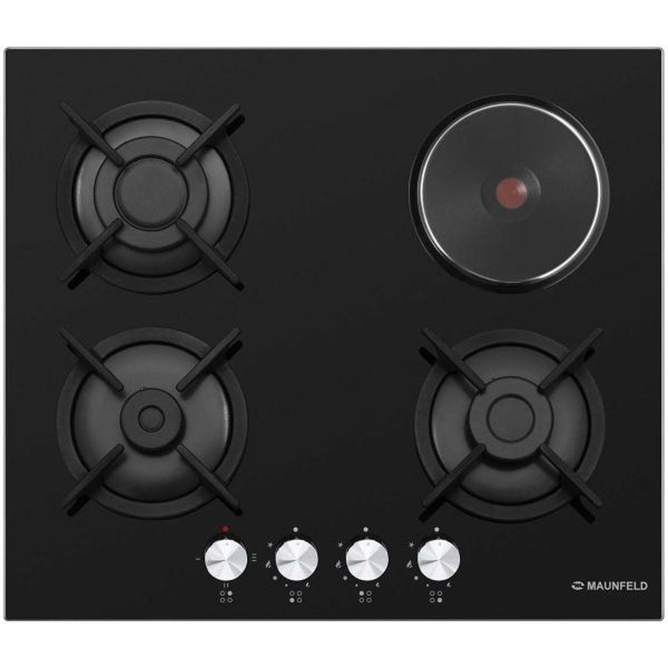 Встраиваемая панель Maunfeld EEHG.64.13CB/KG черного цвета работает на базе двух газовых конфорок и WOK-конфорки. Общая мощность устройства — 5,7 кВт. Дополнительно есть электрическая конфорка мощностью 1500 Вт. Газовые конфорки оснащены системой отключения подачи газа при погасании пламени. Для регулировки мощности конфорок используются механические регуляторы с системой автоматического поджига (для газовых). Размер панели — 590х51х515 мм, вес — 12,78 кг.