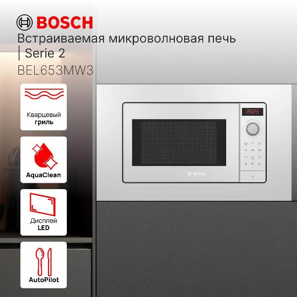 Вы можете купить Встраиваемая микроволновая печь Bosch BEL653MW3 в магазинах М.Видео по доступной цене. Встраиваемая микроволновая печь Bosch BEL653MW3: подробное описание, фото и отзывы реальных покупателей, характеристики, возможность скачать инструкции и подобрать аксессуары.