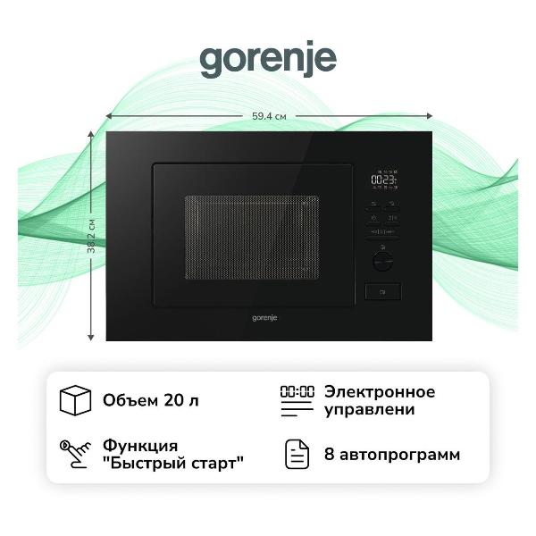 Gorenje BM201M2BG — встраиваемая микроволновая печь с грилем. Дополнена режимом энергосбережения и потребляет 1250 Вт.