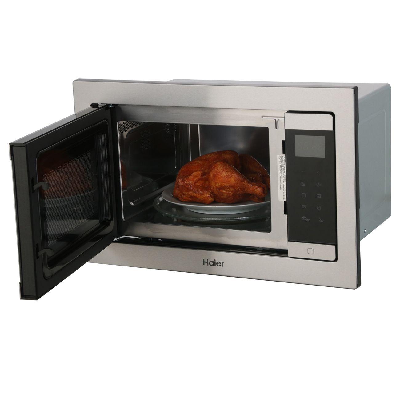 Встраиваемая микроволновая печь Haier HMX-BTG259LX — комбинированная модель с грилем для установки в кухонную колонну.