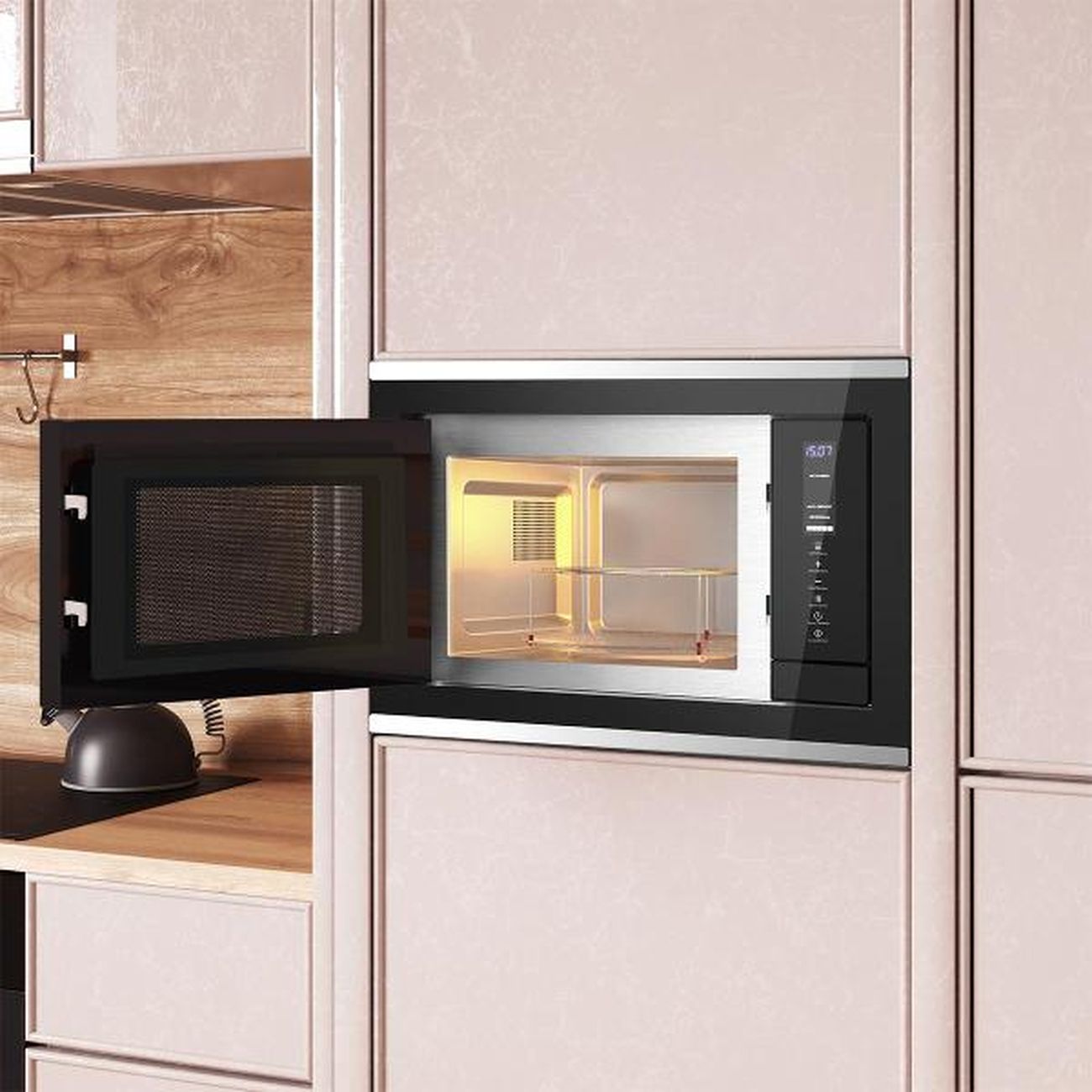 Встраиваемая микроволновая печь Libhof MWB-5425BS - настоящая находка для моей кухни! Стильный дизайн, удобное сенсорное управление, яркий дисплей. Разнообразие режимов и функций приятно удивляет: быстрый разогрев, разморозка, приготовление блюд - эта печь справится с любой задачей. Отдельного внимания заслуживает функция гриля, блюда получаются с аппетитной хрустящей корочкой. Печь легко чистить, она работает тихо.