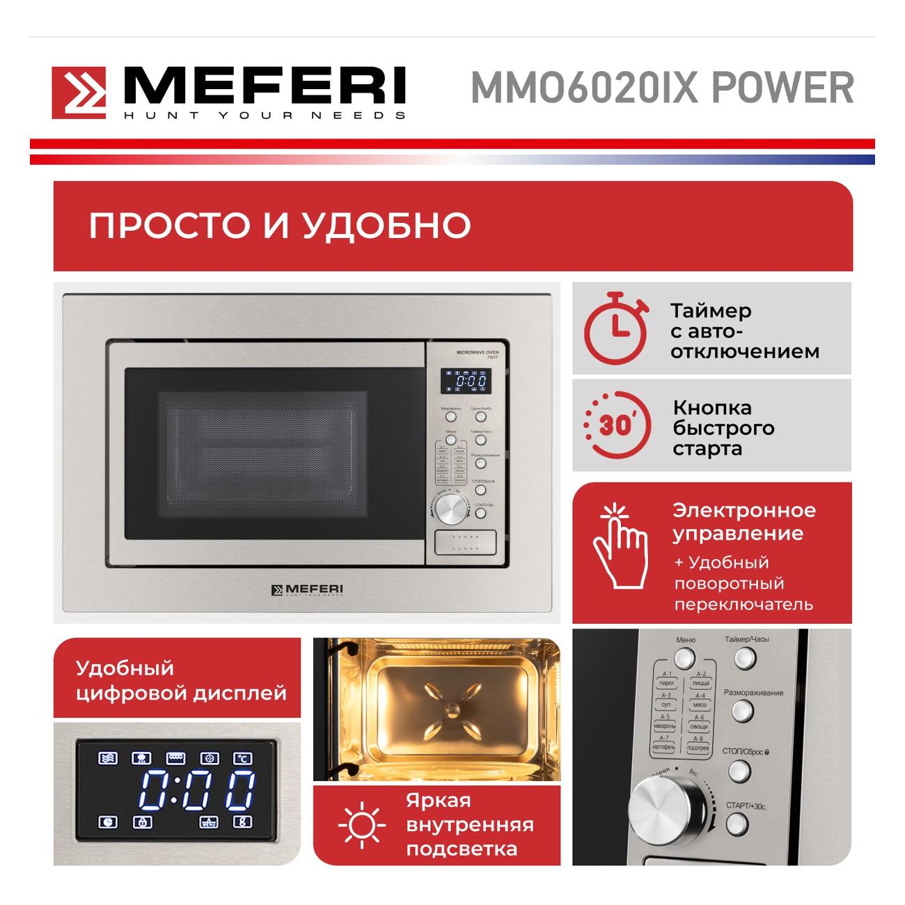 Ознакомьтесь с отзывами реальных покупателей и пользователей товара Встраиваемая микроволновая печь MEFERI MMO6020IX POWER на сайте М.Видео.
