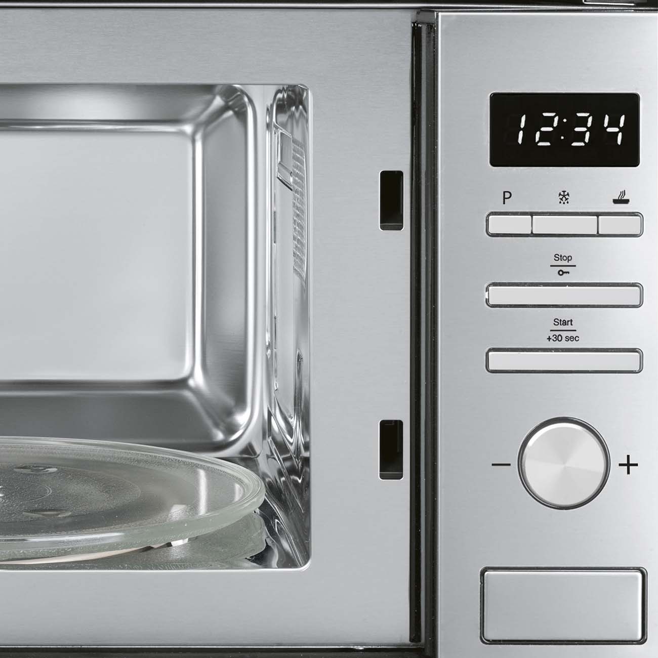 Smeg FMI017X – встраиваемая микроволновая печь, которую отличает лаконичный дизайн. Передняя панель выполнена из высококачественной нержавеющей стали. Из-за особой обработки на ней не будут оставаться следы от пальцев.