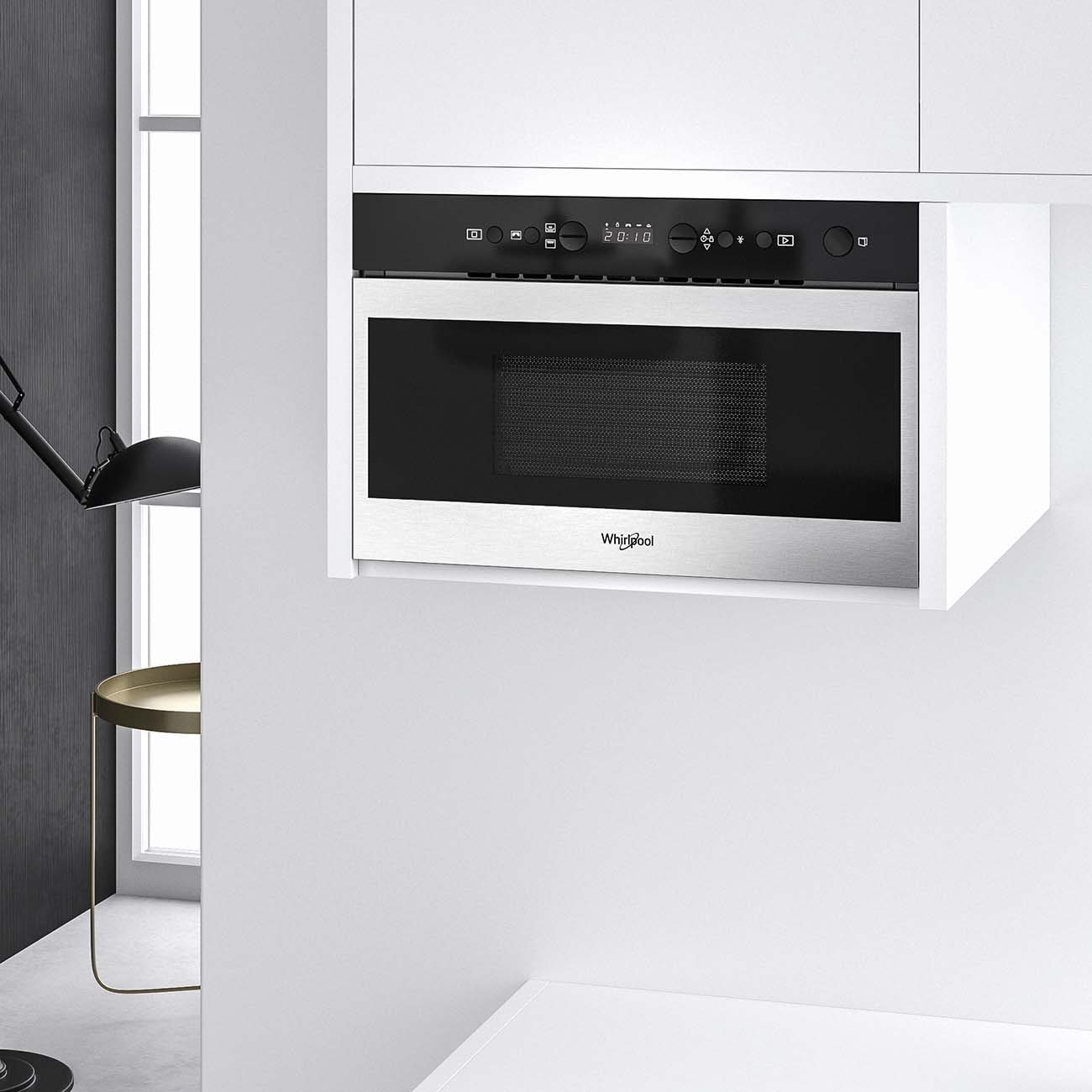 Микроволновая печь Whirlpool W7 MN840 готовит и разогревает еду, размораживает продукты и полуфабрикаты. За счёт дизайна в современном стиле она хорошо вписывается в интерьер кухни.