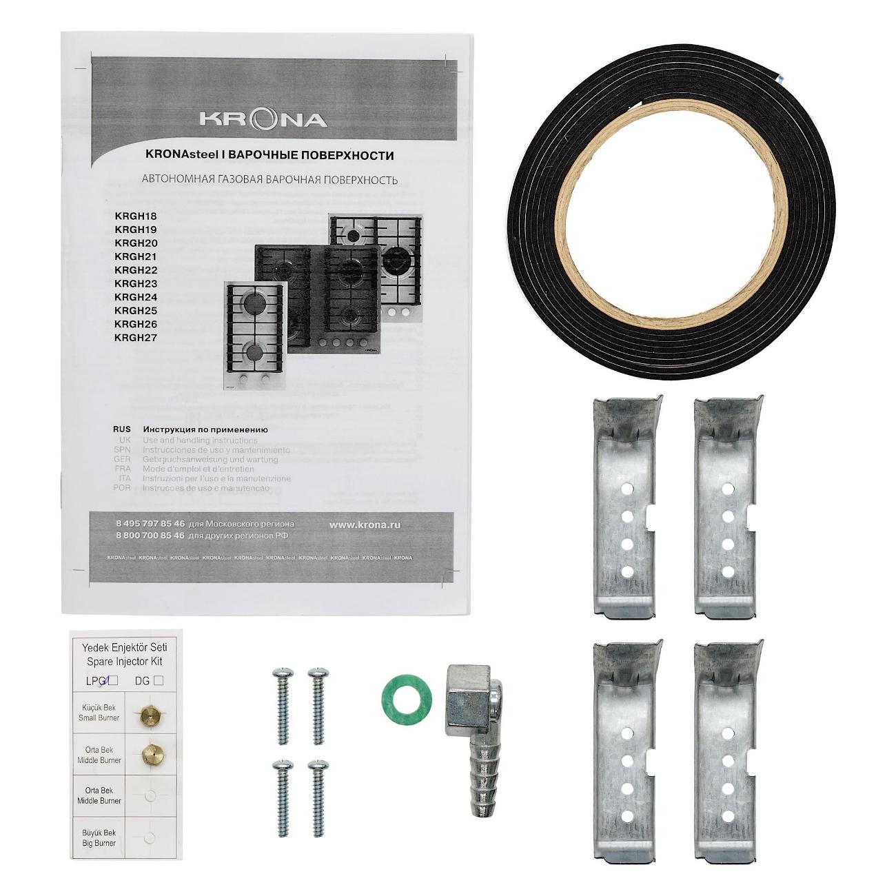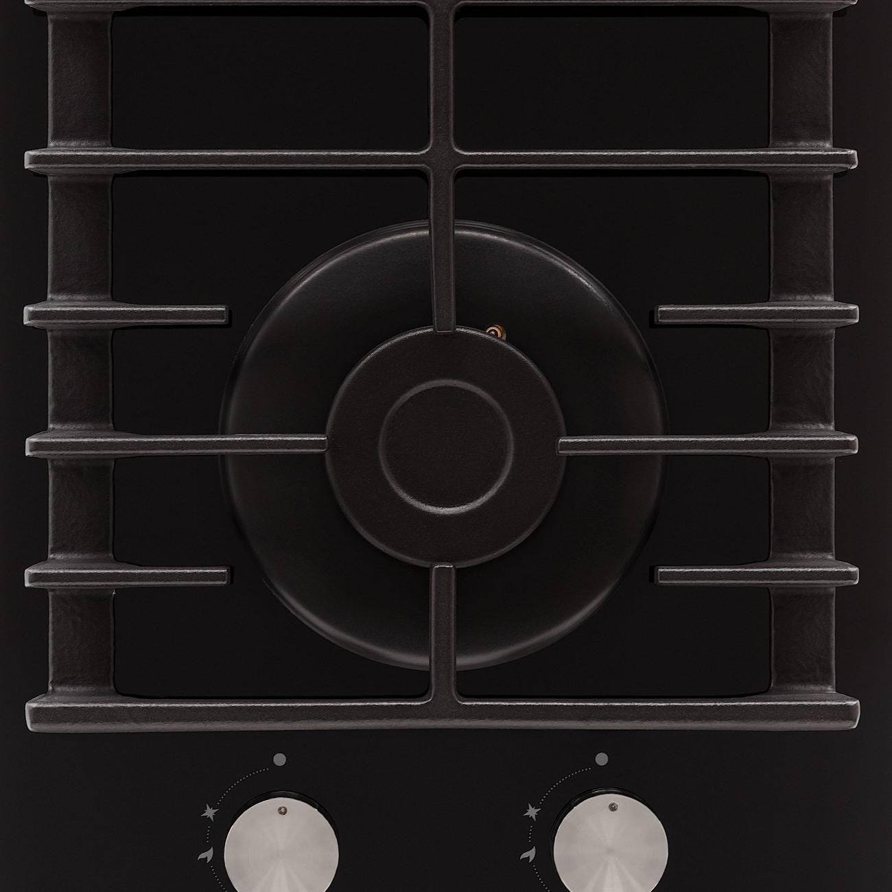 Опорой для посуды служит чугунная решетка — она не деформируется и не прогнется весь срок службы панели. Ширина модели — 29 см, глубина — 51,5 см, вес — 8,02 кг. Для монтажа потребуется ниша 260х485 мм, толщина столешницы должна быть не менее 3,5 см. В комплекте поставляется набор жиклеров для подключения газового баллона.