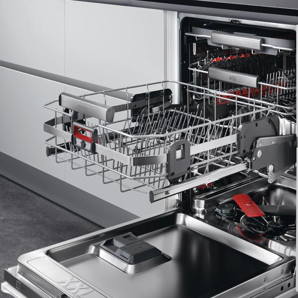 Посудомоечная машина AEG FSR83800P, оборудованная подъёмным механизмом нижней корзины ComfortLift, - хороший выбор для тех, кто не хочет тратить время на мытьё посуды. Одним движением руки, не наклоняясь, можно поднять корзину на верхний уровень, чтобы загрузить тарелки и стаканы, а затем так же легко и просто опустить её вниз. Это вместительная модель, способная качественно отмыть до 13 комплектов за одну загрузку.