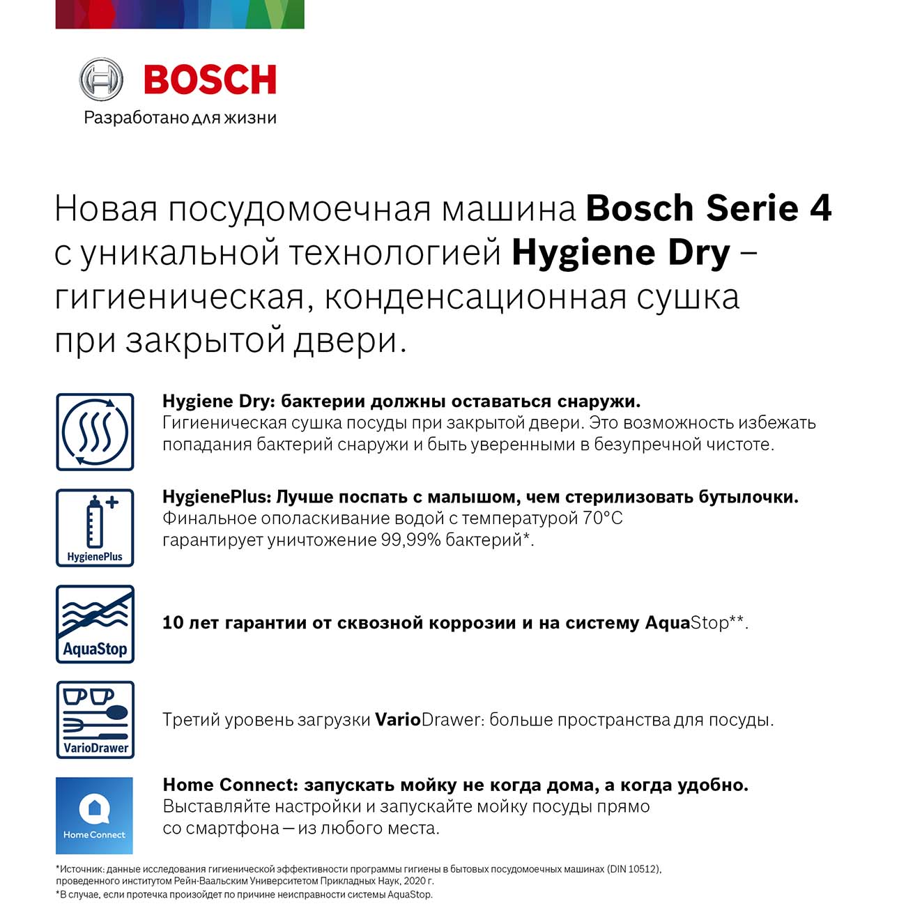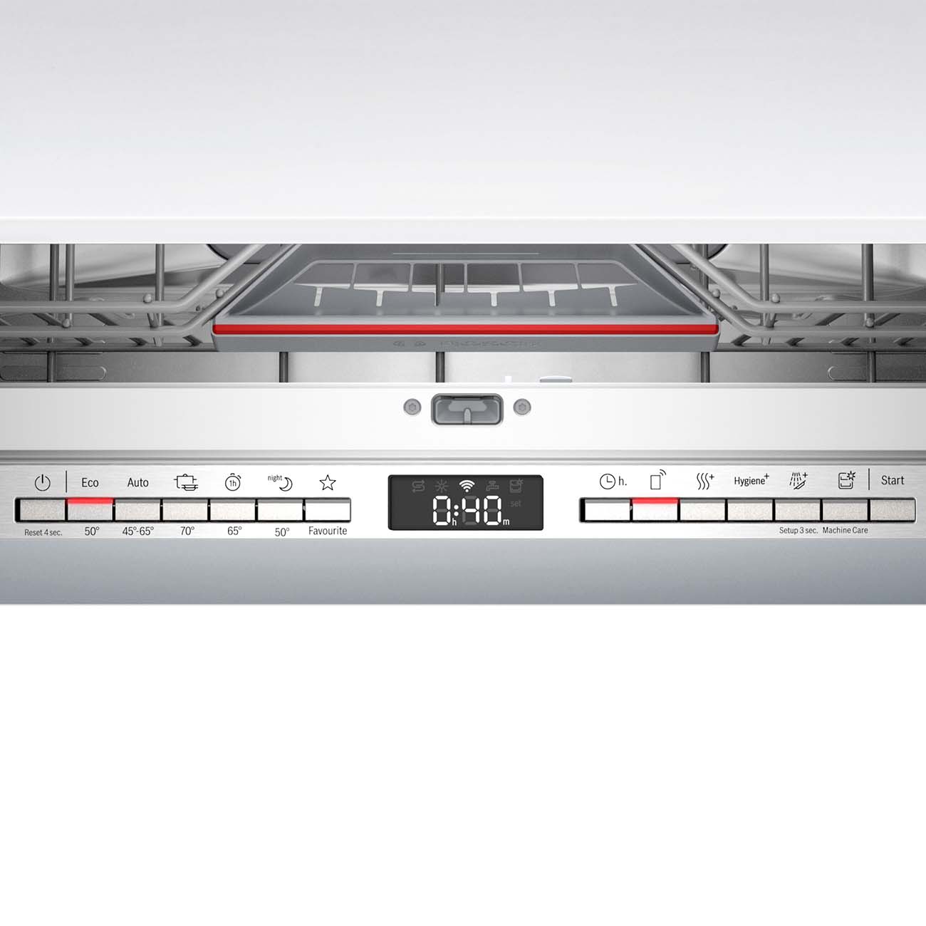 Очень удобное приложение Home Connect - удобно управлять машинкой из любого места(быстрая настройка жесткости воды, использования ополаскивателя, старт программ, выбор программ, отсрочка старта программ, видно оставшееся время до конца программы, счетчик оставшихся таблеток, инструкции по эксплуатации).Совместима с умным домом и Алисой.
