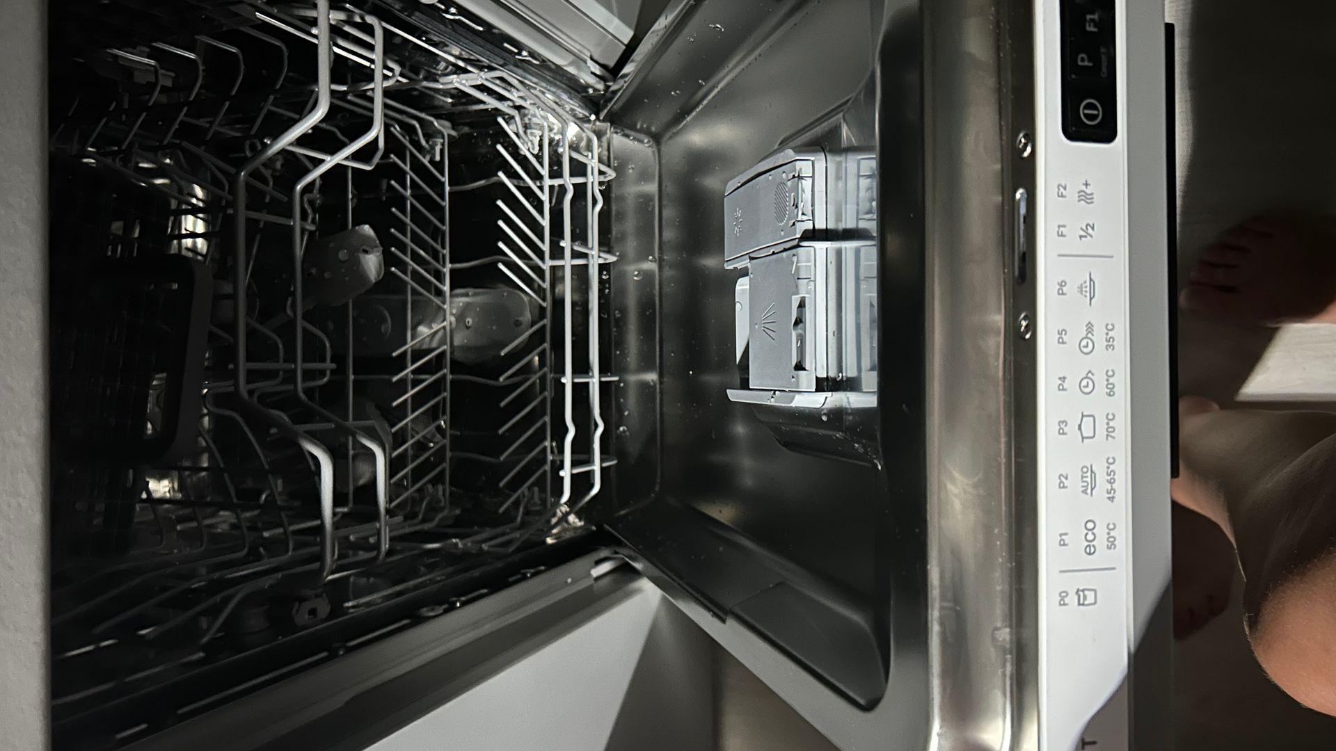 Как мы раньше жили без нее? я просто не представляю. Это просто лучшее изобретение для кухни))) мы кайфуем уже полгода с этой посудомойкой. Муж установил сам, по началу пожалели, что купили такую махину, показалось большой, а как установили, поняли - идеально. Не представляем свой быт без нее. Различные режимы мыться по времени и соответственно по температуре, мои любимчики 1 час 55 минут для сильной грязной присохшей посуды, и 58 мин для ежедневного использования. Есть ещё программа на 30 минут - это если сполоснуть посуду свежую-свежую или пыльный набор со шкафа. Есть индикатор-проекция на пол, красным достаточно ярким светом. В комплекте есть тестер на жёсткость воды , по типу теста на беременность, толькл жидкость другая)) По этому тесту у нас нормальная вода, соль не нужна, но я использую капсулы Фейри 3в1 и мне очень нравится.