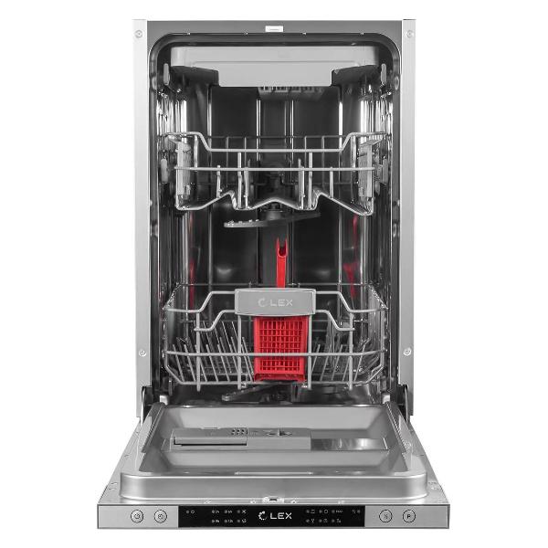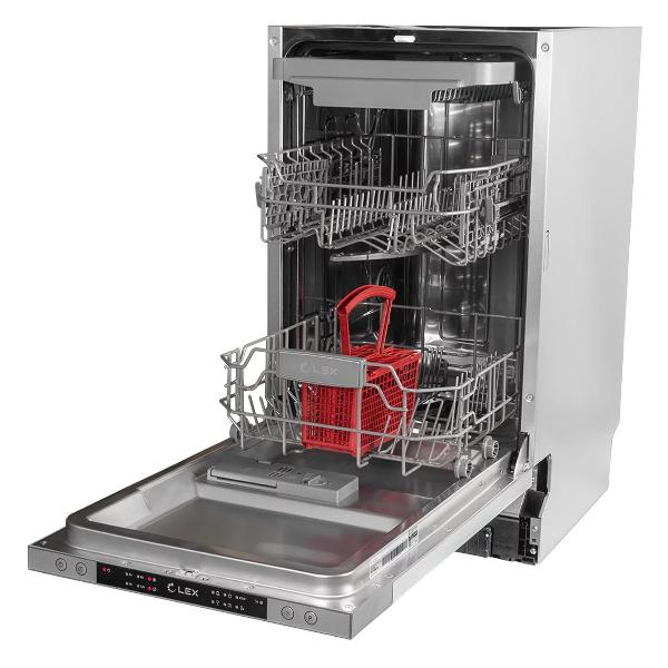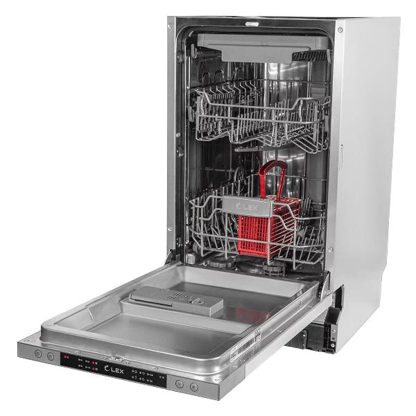 Узкая полновстраиваемая посудомоечная машина шириной 45 см Lex PM 4563 A, серого цвета монтируется в нишу размером: 820х450х560 мм. Она вмещает до 10 комплектов посуды, которые размещаются на трех уровнях загрузки. Корзины регулируются по высоте, оснащены держателями для тарелок, бокалов и чашек. Сушка происходит конденсационным способом.