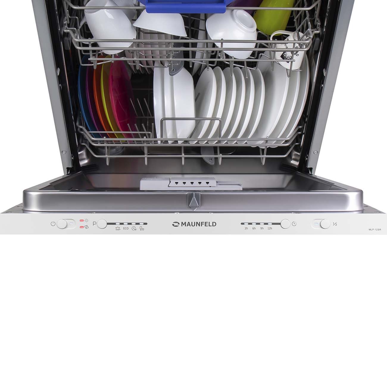 Забыли загрузить несколько кружек и блюдец? Не переживайте, поскольку это можно сделать даже после включения Maunfeld MLP-12SR. Спокойно кладите в машину бокалы из тонкого стекла и не бойтесь, что они повредятся. Для вашего удобства можно использовать высокоэффективные средства «3-в-1» – покупать отдельно моющий гель, ополаскиватель и соль нет необходимости.