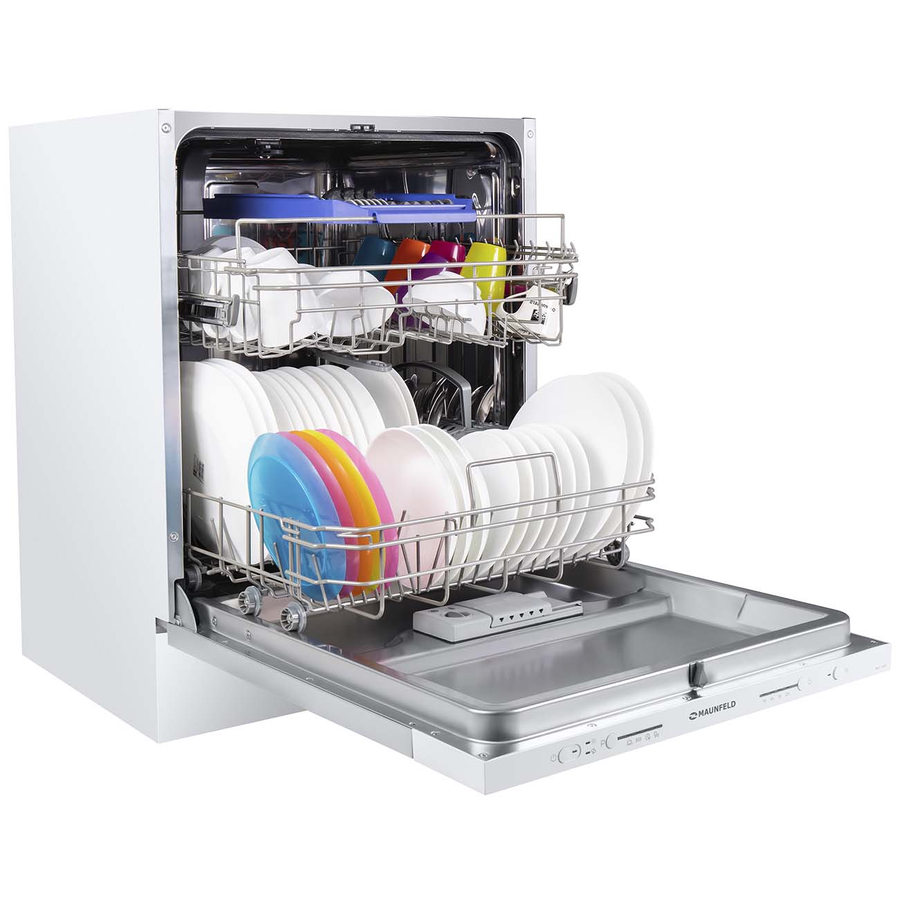 В процессе работы Maunfeld MLP-12SR создаёт невысокий уровень шума, сравнимый с разговором между людьми. А небольшой расход воды за цикл (10 литров) и принадлежность к классу A по степени энергоэффективности делают посудомоечную машину по-настоящему экономичной.