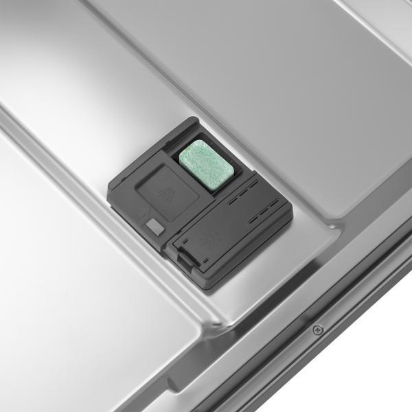 Расход воды за цикл составляет всего 9,8 литра. Функция половинной загрузки отсутствует, но доступна возможность добавить забытую посуду в начале цикла.