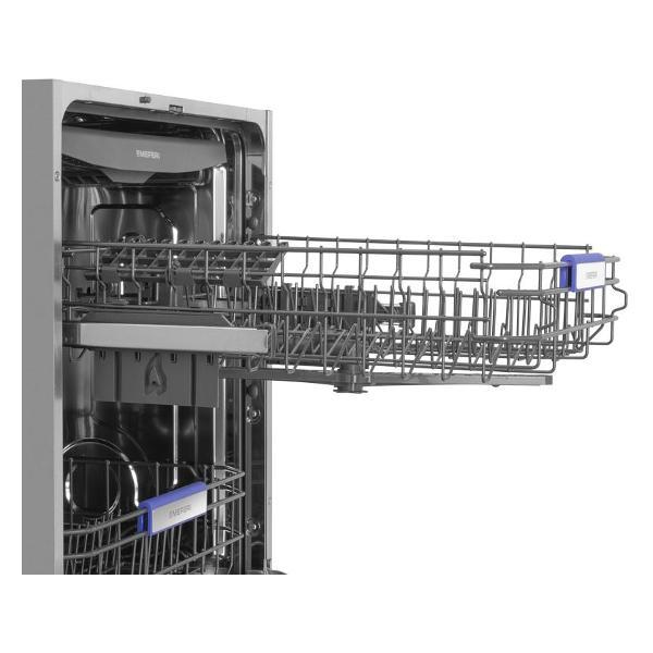 Внутренняя камера оснащена яркой LED-подсветкой, которая автоматически включается при открытии двери. Третья корзина для столовых приборов и регулируемый по высоте средний короб позволяют гибко размещать посуду любых габаритов.