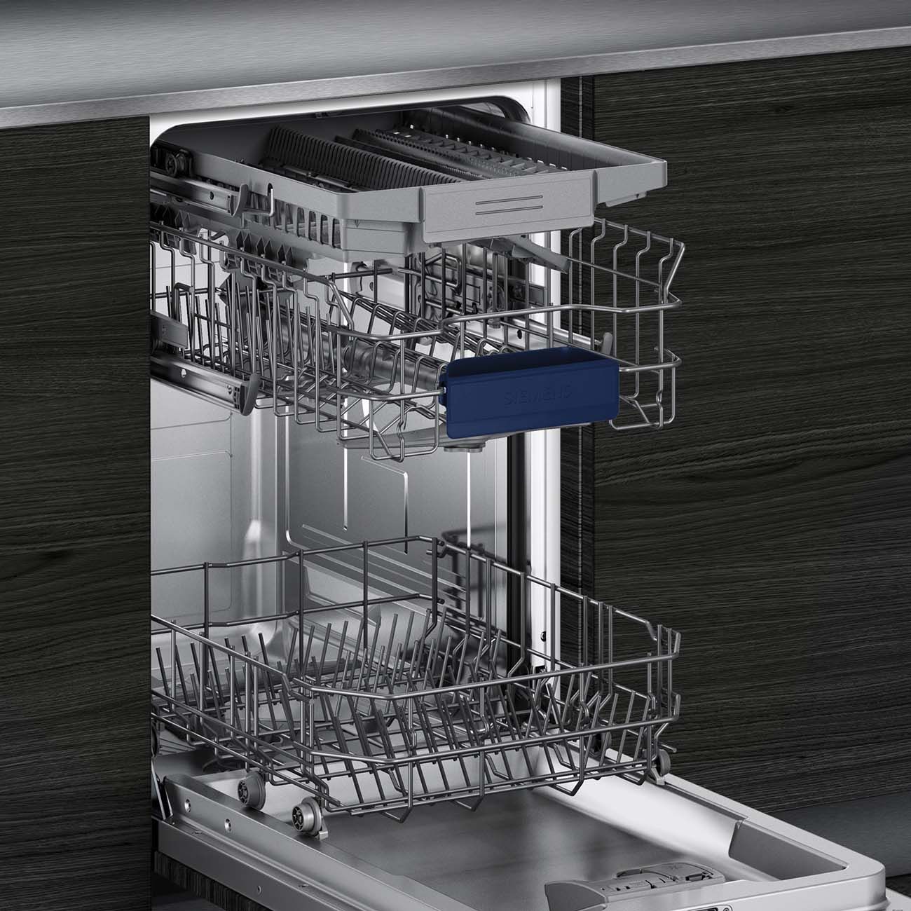 Встраиваемая посудомоечная машина Siemens iQ500 SR65HX10MR – сочетание компактности и вместительности. При ширине 45 см она поместится даже в небольшую кухню, при этом за раз можно загрузить до десяти комплектов.