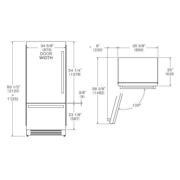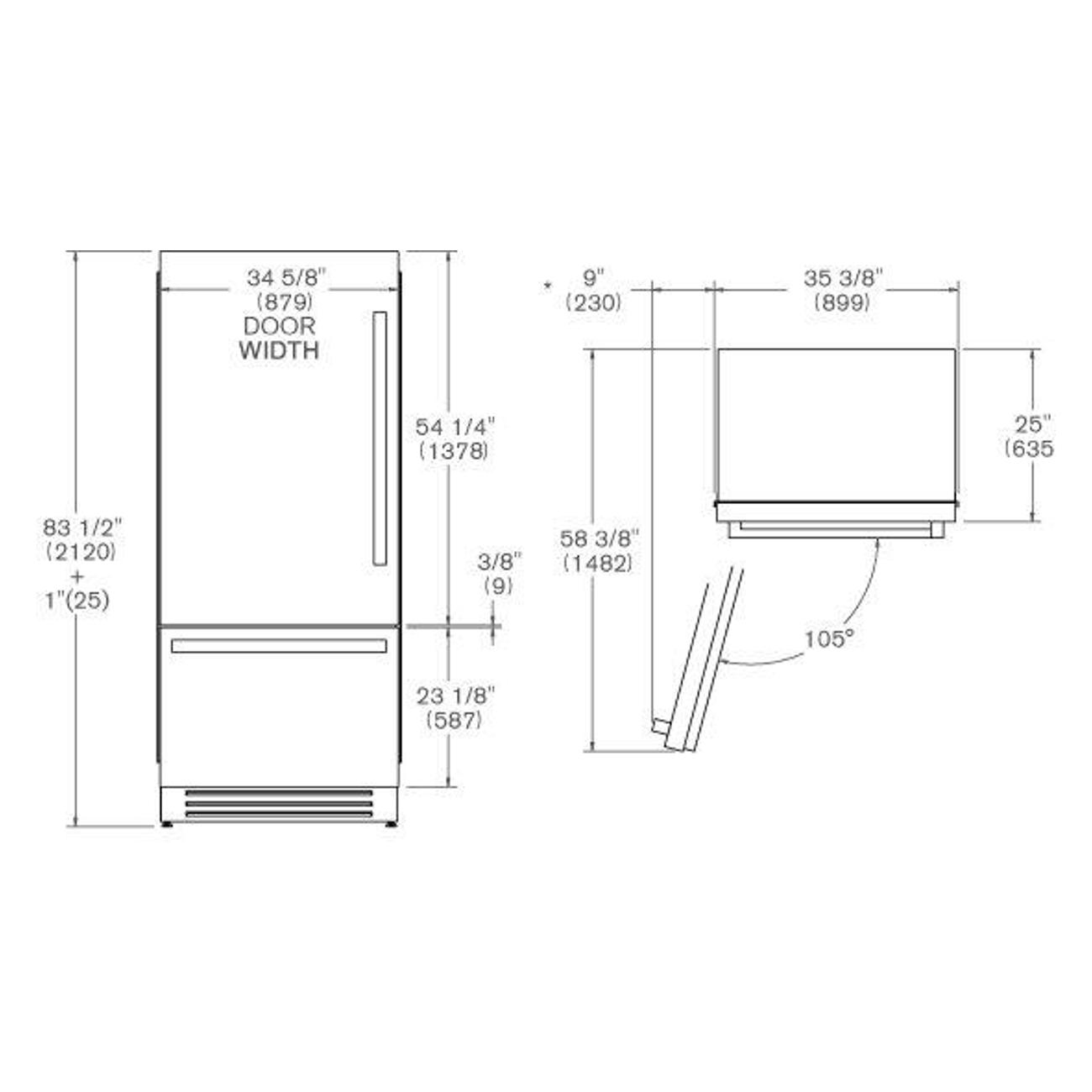 Встраиваемый холодильник Bertazzoni REF905BBLXTT, нержавеющая сталь — вместительный прибор, обладающий габаритами 212х89,9х63,5 см, весом 235 кг и общим объемом 556 л. Установка производится в нишу размерами 213х90х56 см.