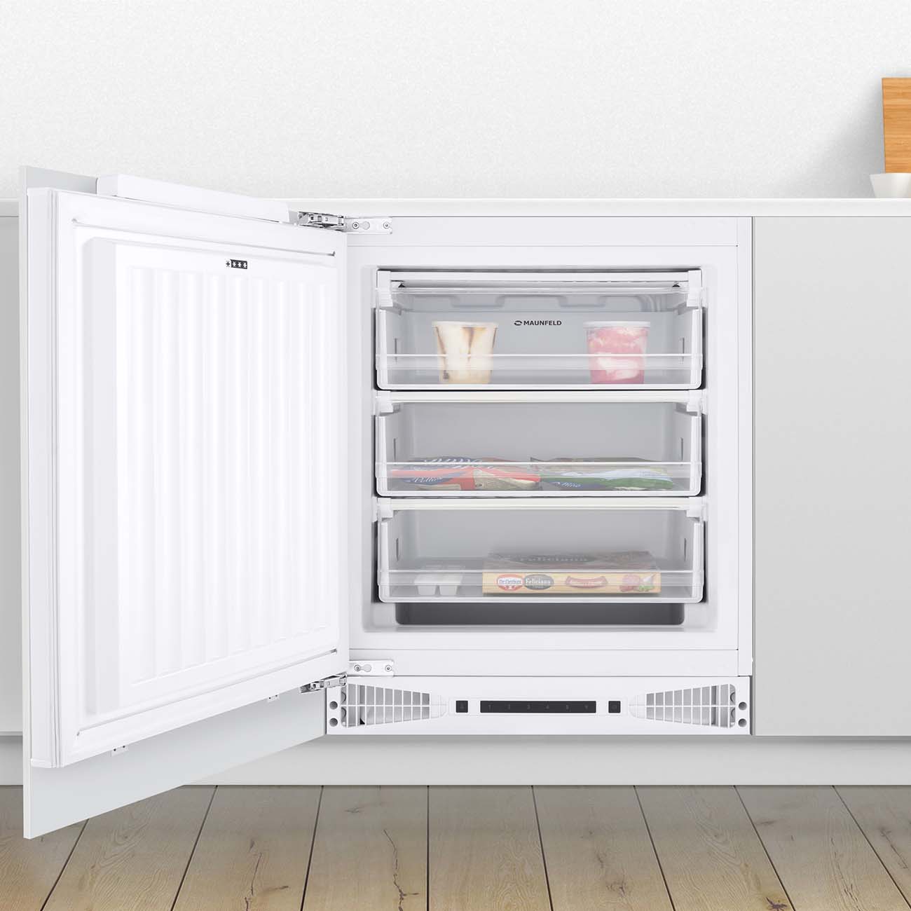 Встраиваемый морозильник Maunfeld MBFR88SW – это современная кухонная техника с цифровым управлением и отлично читаемым дисплеем.