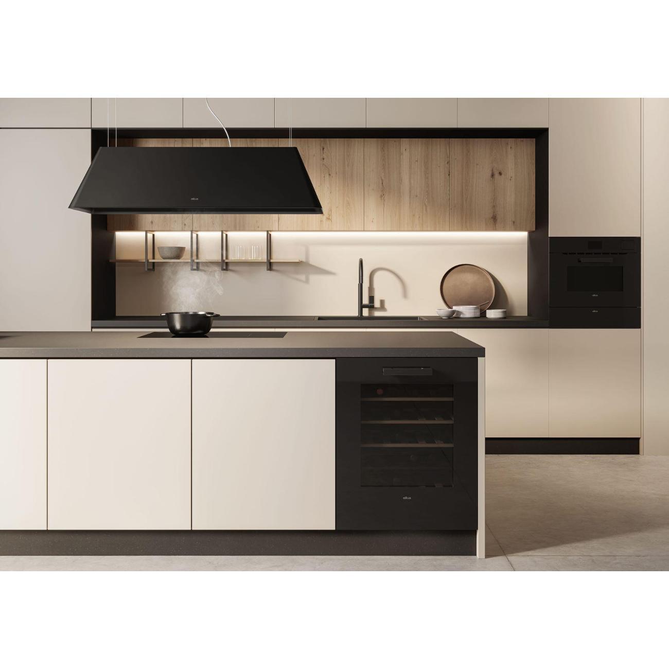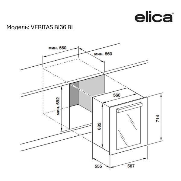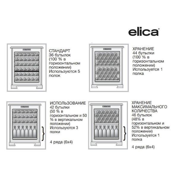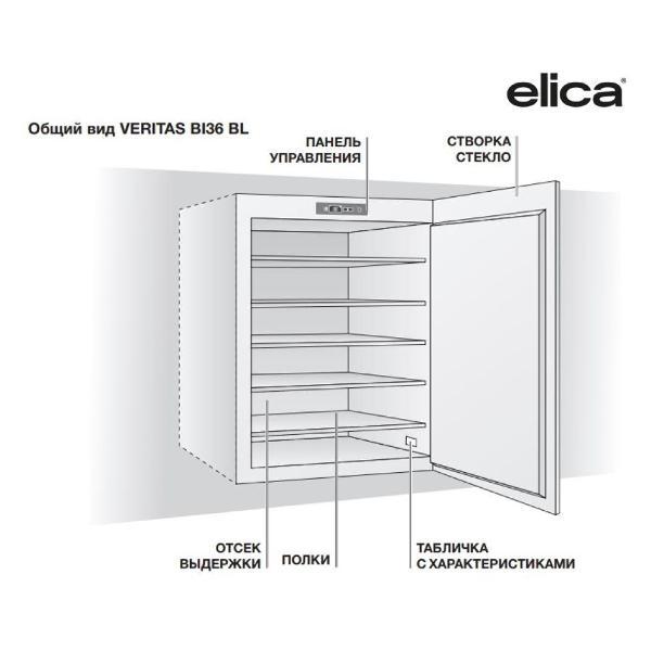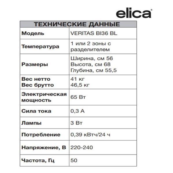 Встраиваемый винный шкаф Elica Veritas BI36 BL в корпусе черного цвета рассчитан на размещение 36 бутылок в двух температурных зонах (от 5°С до 20°С). Прибор оснащен пятью выдвижными полками из дерева с решетками из бука. Предусмотрена перегородка для хранения красного и белого вина. Объем камеры составляет 103 л.