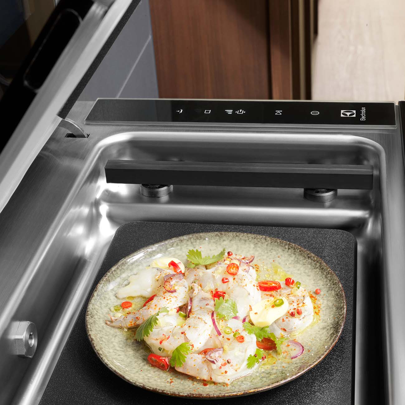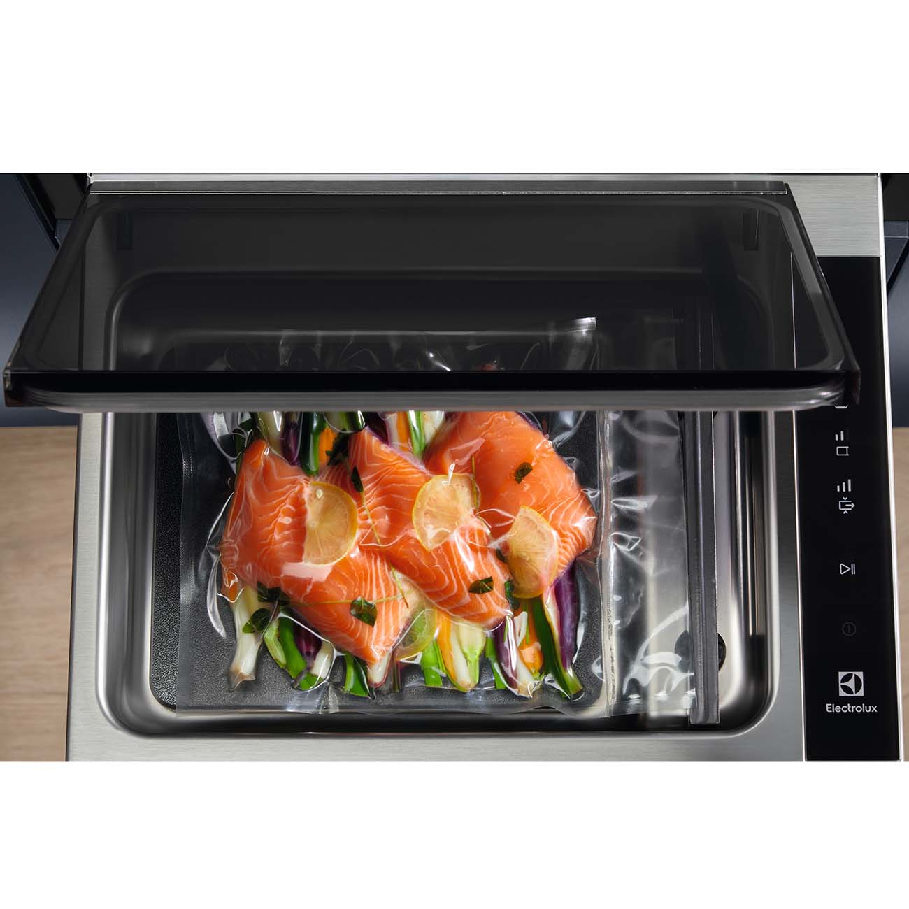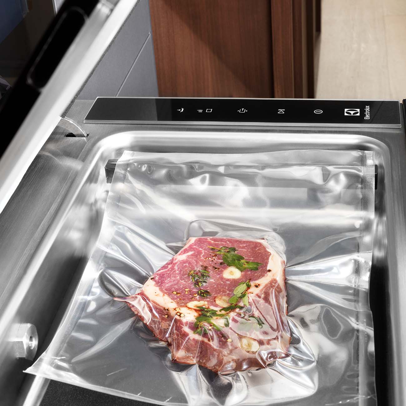 Вакуумный упаковщик Electrolux Intuit 900 KBV4T совместим со всеми типами стандартных пакетов. Он позволяет готовить любимые блюда в сувиде, обеспечивая им мягкость и нежность, и быстро мариновать продукты, при этом вкус и аромат будут безупречно естественными и особенно ярко выраженными.