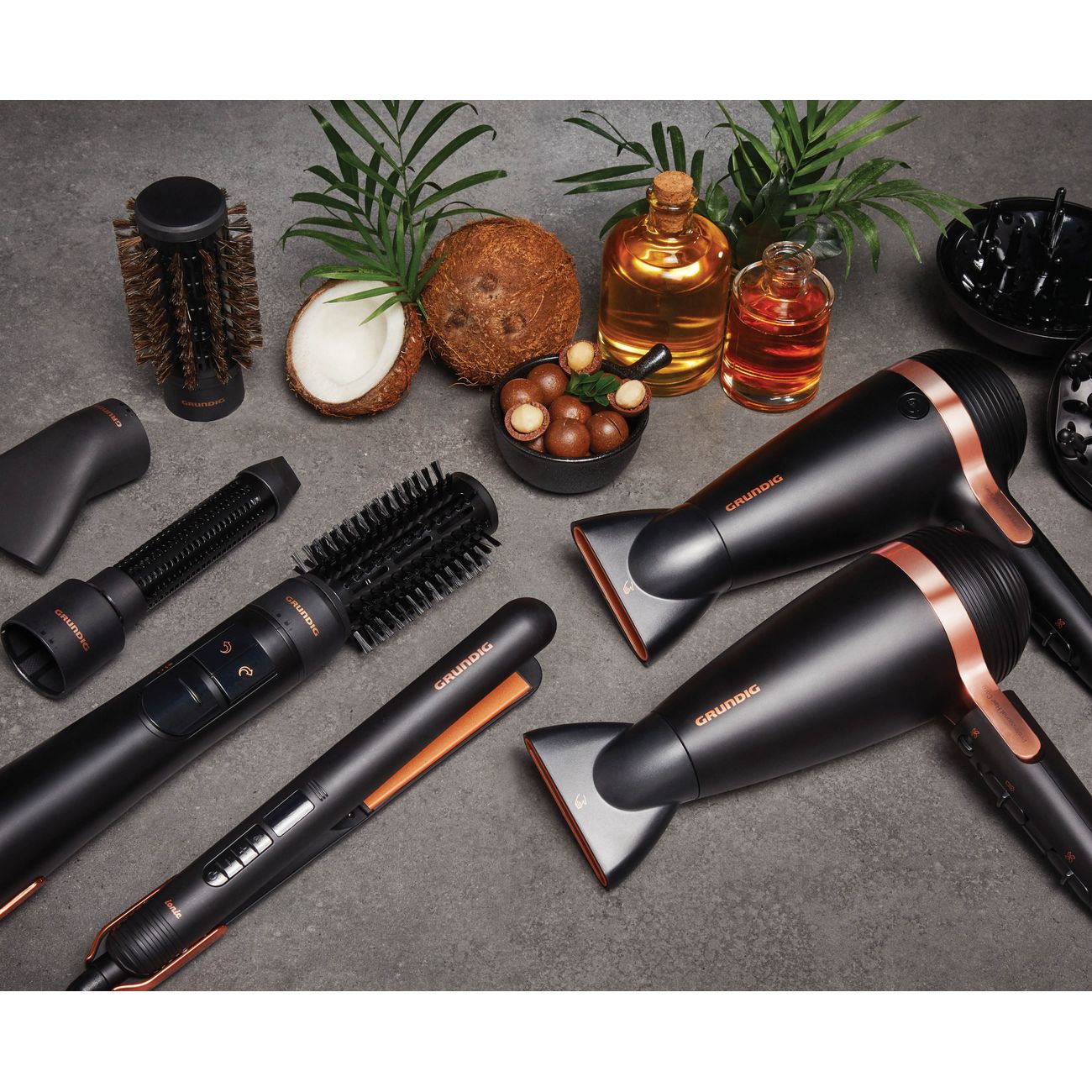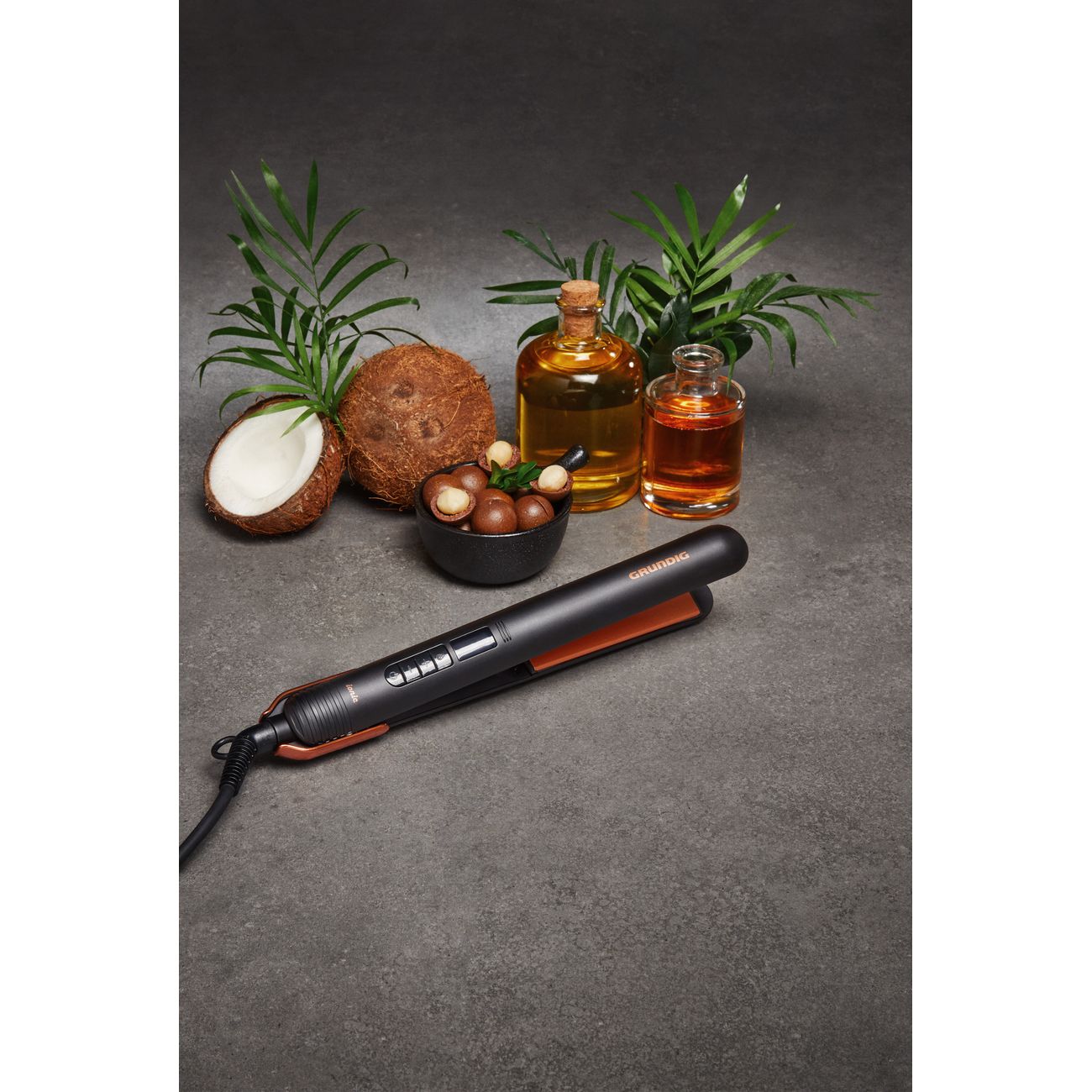 Выпрямитель волос Grundig HS 7030 оборудован плавающими керамическими пластинами, покрытыми натуральными маслами. Предназначен для выпрямления, укладки, формирования локонов и каскадных волн. Предусмотрено шесть температурных режимов. За 2 минуты устройство нагревается от 130°С до 230°С. На пластиковом корпусе черного цвета расположен дисплей, где отображается включение, готовность к работе, выбранный режим и текущая температура.