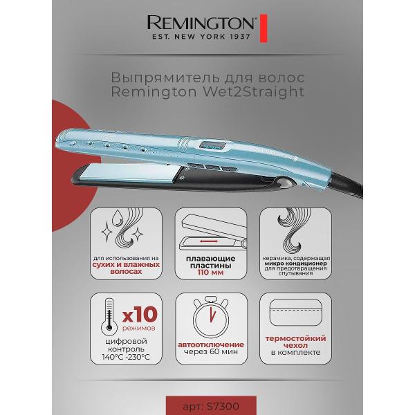 Вы можете купить Выпрямитель волос Remington S7300 E51 W2S Straightener в магазинах М.Видео по доступной цене. Выпрямитель волос Remington S7300 E51 W2S Straightener: подробное описание, фото и отзывы реальных покупателей, характеристики, возможность скачать инструкции и подобрать аксессуары.