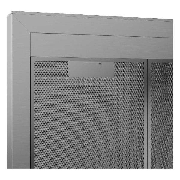 В комплекте с вытяжкой поставляются три жиропоглощающих фильтра. Для очистки воздуха в режиме циркуляции требуется приобрести угольный фильтр. Управление моделью сенсорное. Предусмотрено три скорости работы. На корпусе — индикация включения и активного режима.