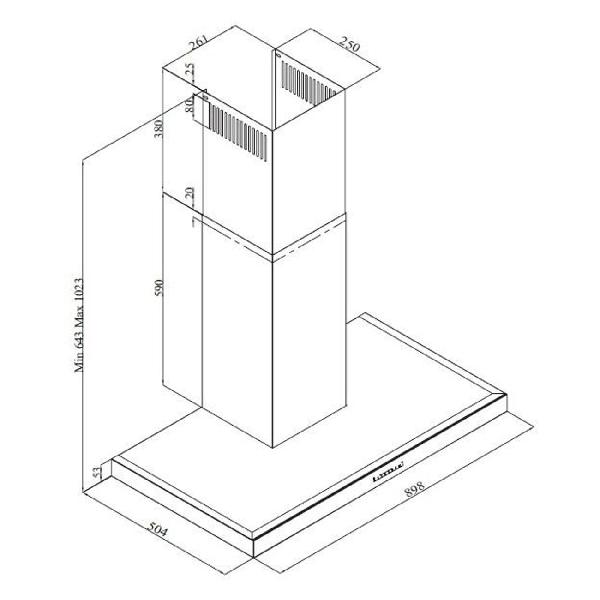 Модель оборудована двумя светодиодными лампочками мощностью 3 Вт каждая. Максимальная производительность вытяжки — 645 м³/ч, потребление электроэнергии — 216 Вт. Уровень шума при работе достигает 68 дБ. Диаметр штуцера для подключения — 12/15 см. Корпус вытяжки выполнен из металла.