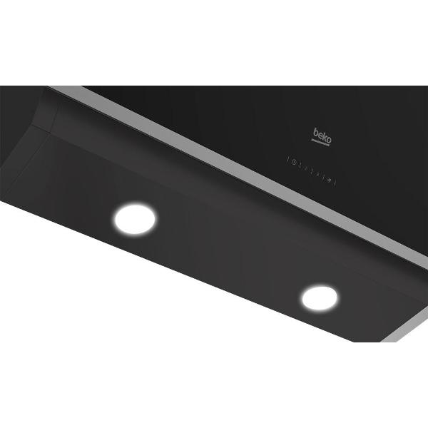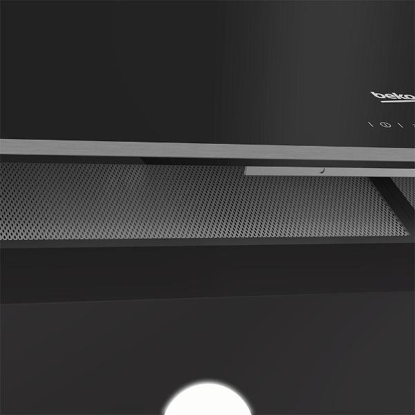 Наклонная вытяжка Beko HCA 93640 BH шириной встраиваний 90 см с системой периметрального всасывания предназначена для установки над варочной поверхностью в помещениях площадью до 15 м². Прибор в стиле High-Tech сделан из устойчивого к деформациям жаропрочного стекла и металла, покрытого защитной эмалью. Двигатель мощностью 210 Вт обеспечивает свободный выход воздуха объемом 258-632 м³/ч. Диаметр трубы воздуховыпускного отверстия составляет 120/150 мм. Показатели шума во время работы устройства не превышают 67 дБ.