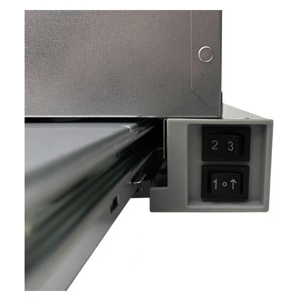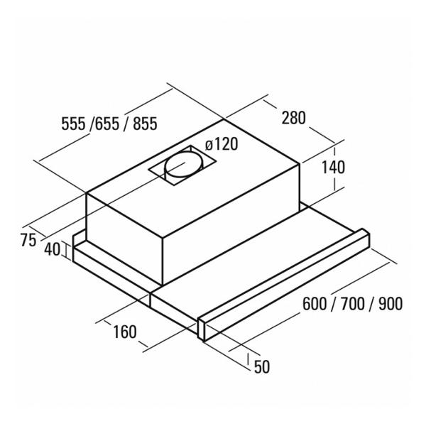 Cata TF-2003 Duralum 700/D — встраиваемая вытяжка планшетного типа в корпусе из нержавеющей стали. Она снабжена выдвижной панелью, благодаря чему вдвое увеличивается рабочая площадь. Передняя панель типа Duralum обладает защитным покрытием. Она снимается для очистки.
