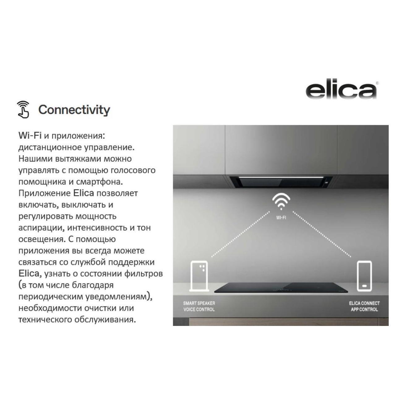 Boxin ADV PLUS — это инновационные вытяжки, которые компания Elica снабдила возможностью подключения по Wi-Fi и Bluetooth, что позволяет управлять ею через приложение или голосового помощника. Он также может синхронизироваться с варочной панелью Elica серии Ratio Connex, поэтому он настраивается самостоятельно в зависимости от используемых конфорок. А также прибор оснастили специальным интеллектуальным датчиком, способным сделать изделие полностью автоматическим и очищать воздух не только во время приготовления пищи, но и в любое время суток. Этот специальный датчик, установленный внутри вытяжки, контролирует качество воздуха в доме и способен определить как тип приготовления пищи и количество испарений, так и наличие загрязняющих веществ, а также автоматически регулировать функцию аспирации для удаления неприятных запахов и вредных веществ, таких как чистящие растворители, сигаретный дым и органические соединения в воздухе. Когда качество воздуха возвращается к оптимальному уровню, вытяжка отключается, что позволяет избежать потерь энергии. Система аспирации по периметру позволяет скрыть данную вытяжку среди настенных шкафов, не понижая качество очистки воздуха. Бесщёточный двигатель последнего поколения обеспечивает бесшумную работу и непревзойденную энергоэффективность. Притихайте и просто дайте приготовлению пищи говорить. Эта инновация снижает мешающие шумы, производимые бытовыми приборами, даже когда они находятся на максимальных настройках. Наконец, вы можете поддержать разговор или насладиться музыкой в окружении только шипящего звука еды, которую вы готовите. Теплый или холодный? Выберите свет, который вам понравится. Данная функция позволяет регулировать цвет светодиодов в вытяжке от теплого белого до холодного белого. Таким образом, выбранный вами свет будет дополнять другие цвета интерьера, создавая единую гармоничную атмосферу во всем помещении. Вытяжка работает как в режиме отвода, так и в режиме рециркуляции. Активация «Отвода» позволяет направить воздушные массы напрямую в вентиляцию, а при запуске «Рециркуляции» они всасываются внутрь прибора, проходят через фильтры и возвращаются обратно в помещение. Угольный фильтр (CFC0140343, CFC0038668, CFC0162221) в комплект не входит. Световой индикатор предупреждает о необходимости очистки фильтров или замены.