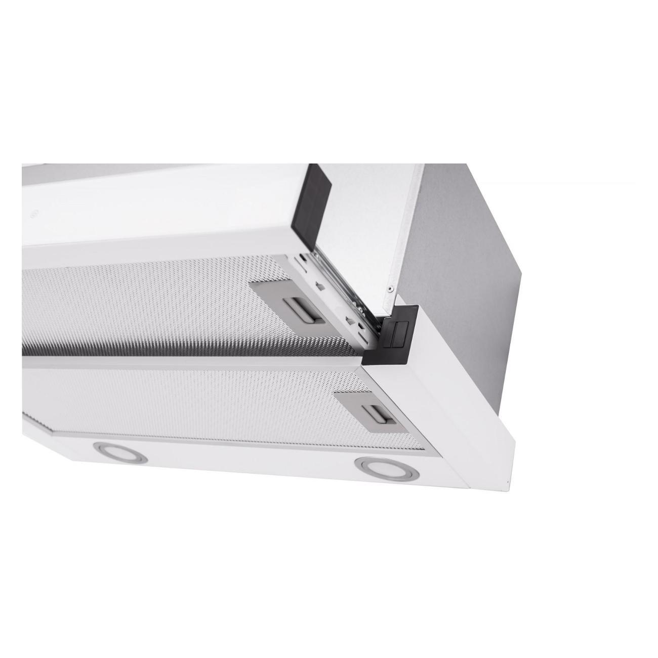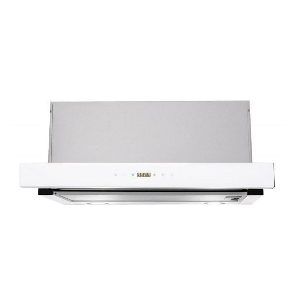 На корпусе расположен цифровой дисплей с индикаторами включения, заданного режима работы, выбранной скорости и времени отключения. Конфигурацией модели предусмотрено наличие двух жиропоглощающих фильтров. Прибор дополнен верхним светодиодным освещением, встроенными часами, таймером и звуковым сигналом.