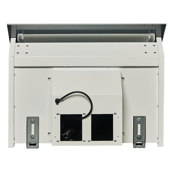 Габариты конструкции — 50х59,7х125 см. Она монтируется на высоте 65 см от плиты. Светодиодные лампы установлены снизу, есть индикатор включения. Управление обеспечивает сенсорная панель. Устройство работает на девяти скоростях. Корпус выполнен из металла. Для подключения к сети используется кабель длиной 1,5 м. Вес модели — 17,7 кг.
