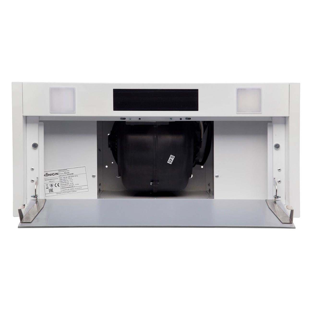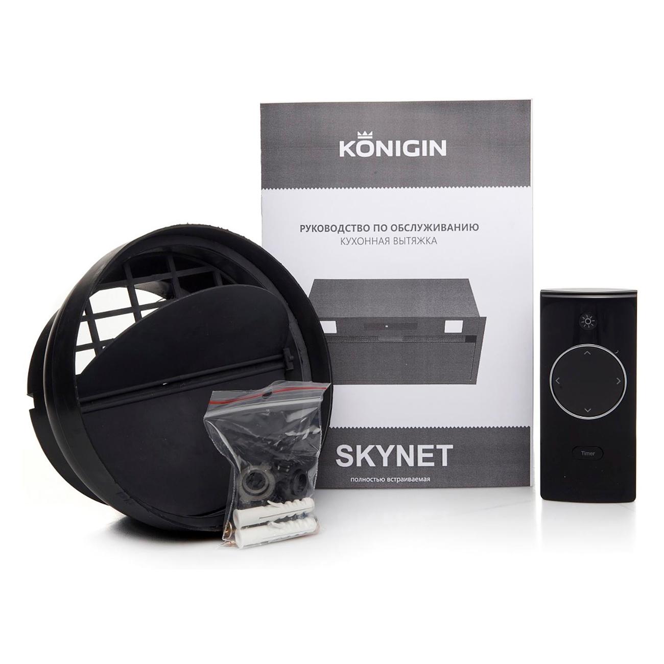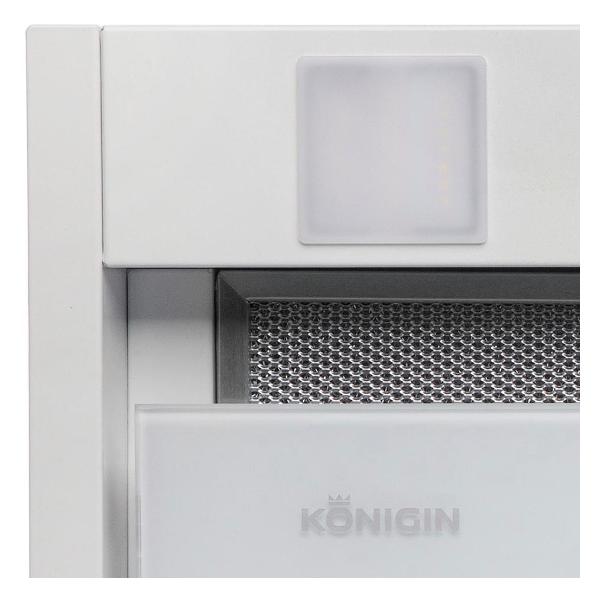 Вытяжка 60 см Konigin Skynet 60 способна работать в четырех скоростных режимах. Для управления устройством используются сенсорные кнопки с подсветкой, встроенные снизу. Установлено светодиодное освещение рабочей области над плитой. Предельный уровень шума в процессе работы не превышает 58 дБ. Размер модели равен 313x597x279 мм.