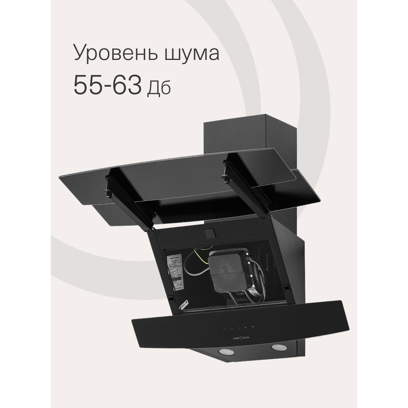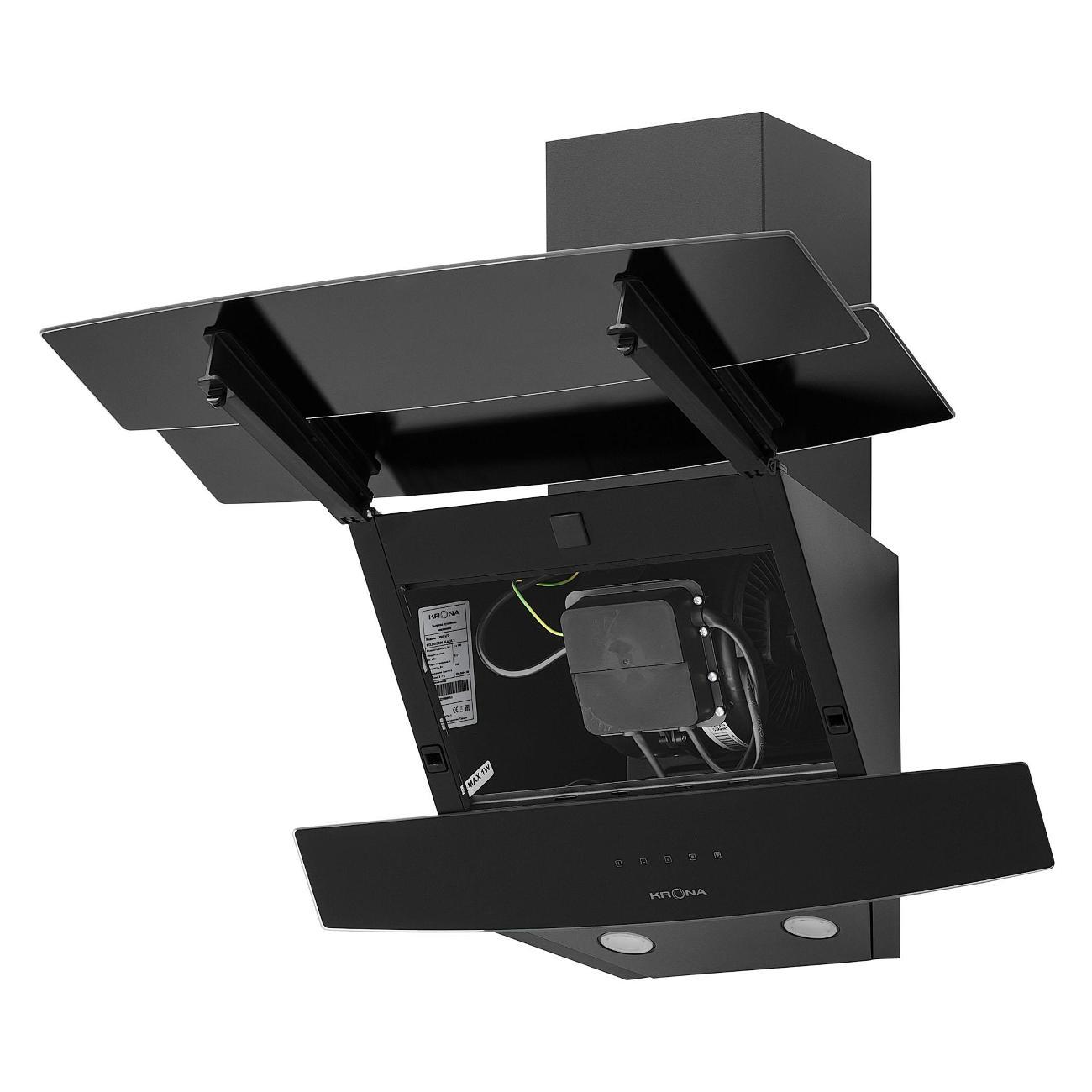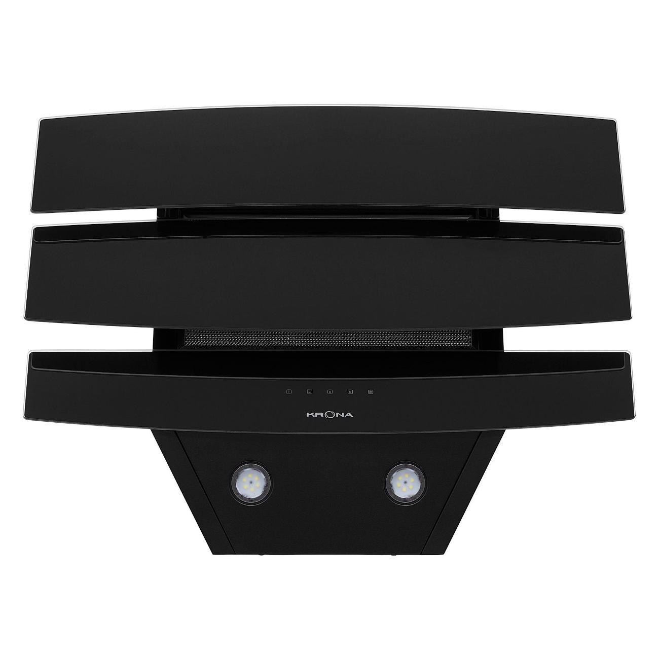 Вытяжка Krona Melodie 600 Black S обладает стандартной шириной 60 см. По форме модель наклонная, предназначена для монтажа на стену. Управление осуществляется посредством сенсорных кнопок. У вытяжки три скорости работы. Индикатор режима и таймер обеспечивают удобство использования устройства. Вытяжка предлагает два режима работы: отвод и рециркуляция воздуха. Освещение осуществляется с помощью светодиодных ламп общей мощностью 2 Вт. Также предусмотрен антивозвратный клапан.