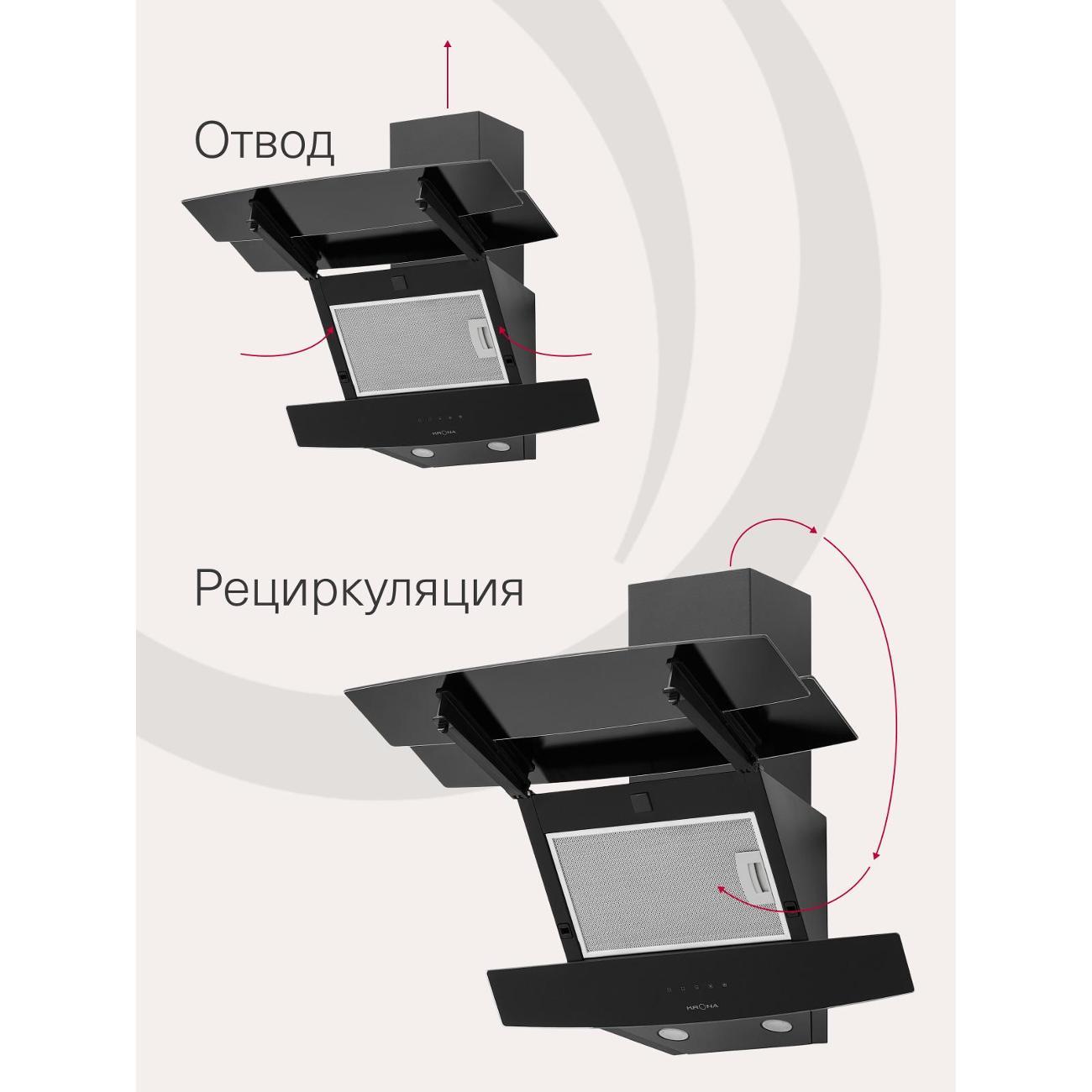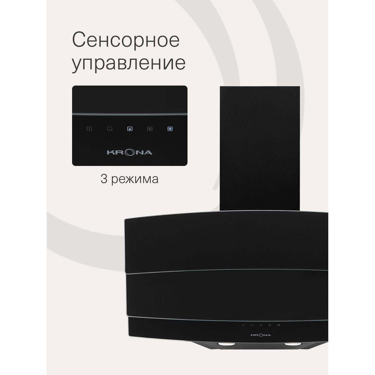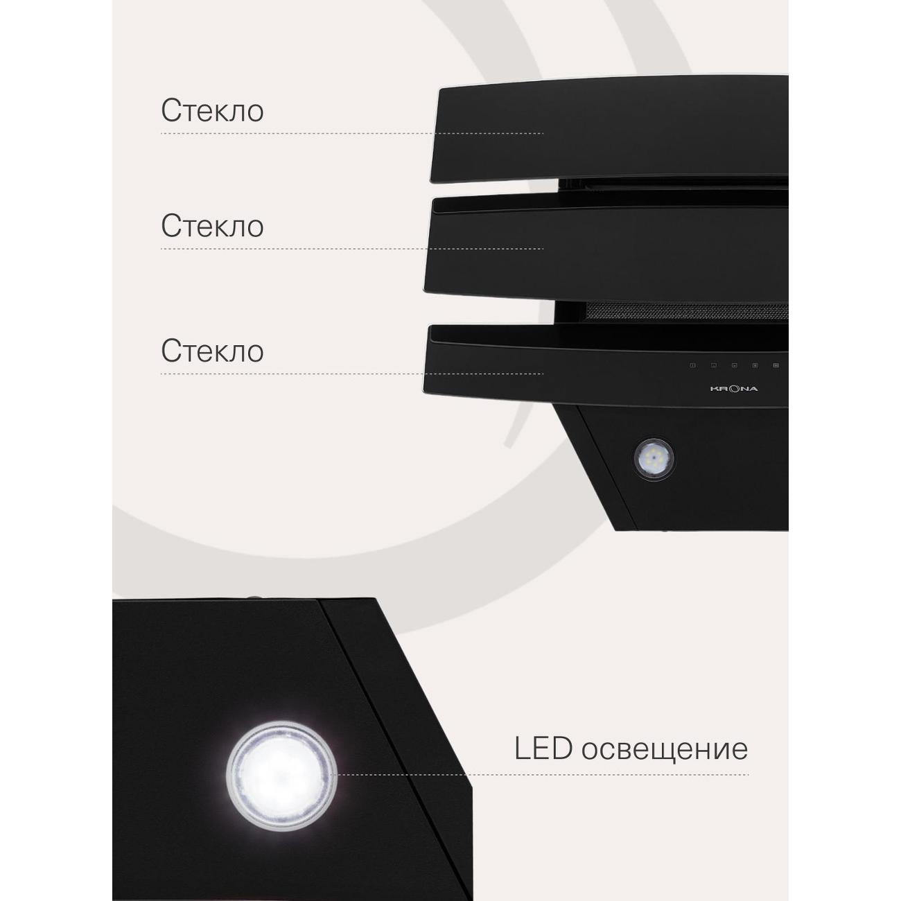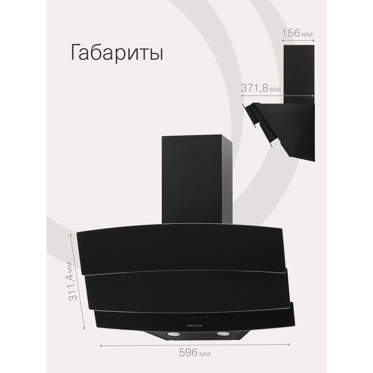 Вытяжка Krona Melodie 600 Black S обладает стандартной шириной 60 см. По форме модель наклонная, предназначена для монтажа на стену. Управление осуществляется посредством сенсорных кнопок. У вытяжки три скорости работы. Индикатор режима и таймер обеспечивают удобство использования устройства. Вытяжка предлагает два режима работы: отвод и рециркуляция воздуха. Освещение осуществляется с помощью светодиодных ламп общей мощностью 2 Вт. Также предусмотрен антивозвратный клапан.
