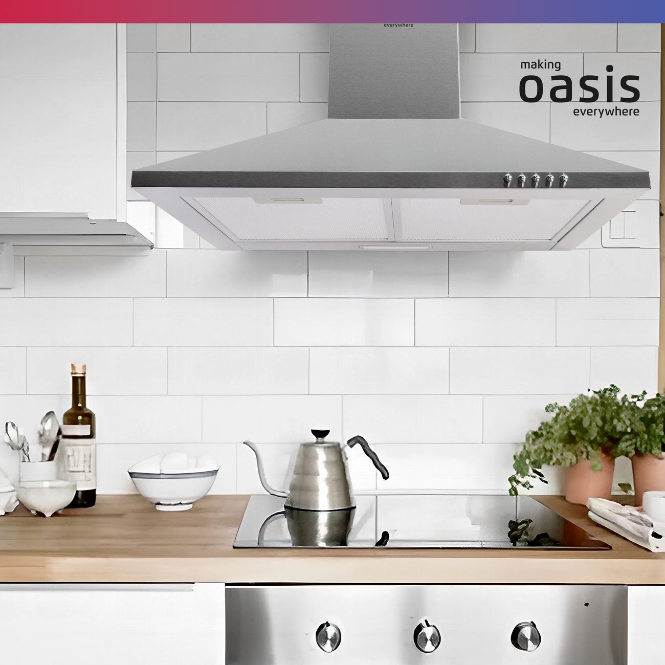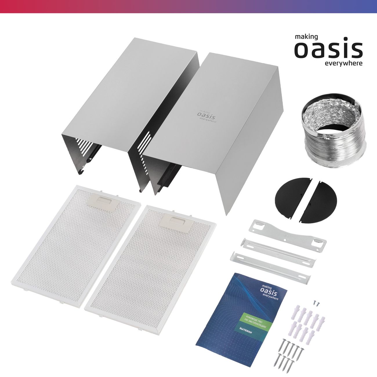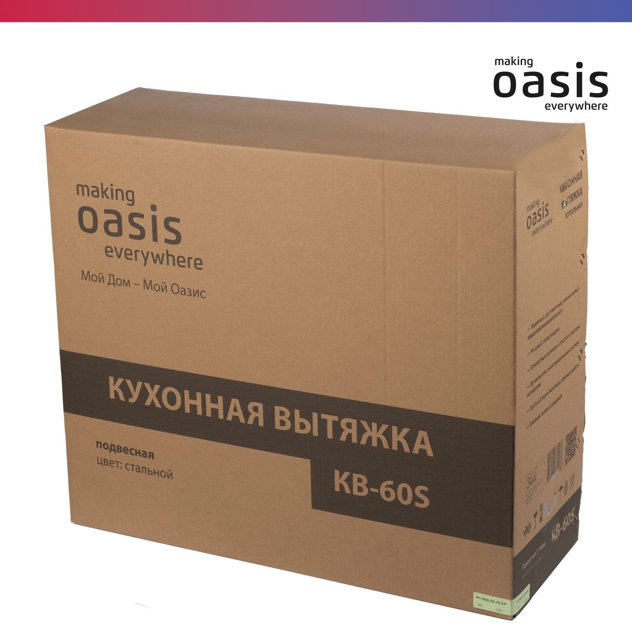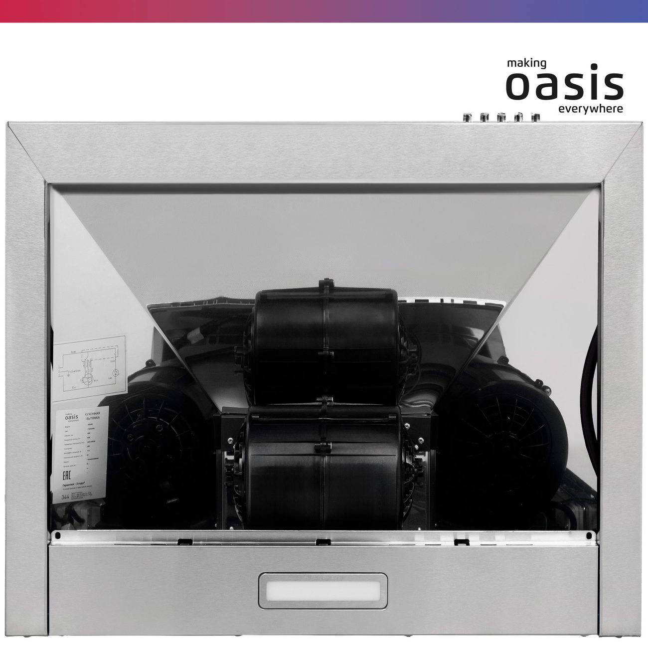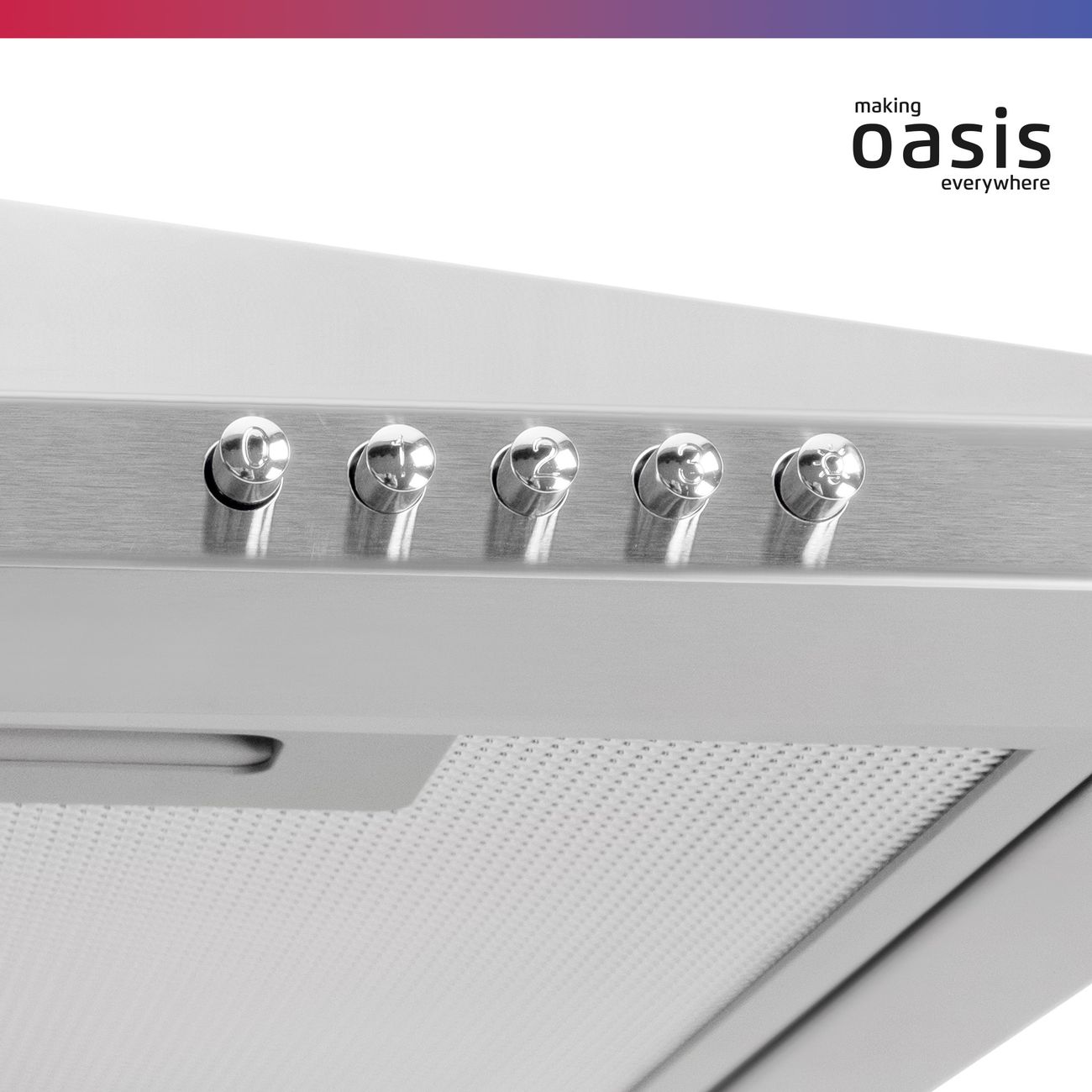 Купольная вытяжка «making Оasis everywhere» KB-60S стального цвета совместима с угольным фильтром TM-1 «making Оasis everywhere». Два жиропоглощающих модуля легко снимаются и очищаются под проточной водой или в посудомоечной машине. Устройство с антивозвратным клапаном отличается высокой производительностью при отводе и рециркуляции, равной 650 м³/ч, чего достаточно для помещения площадью до 20 м².