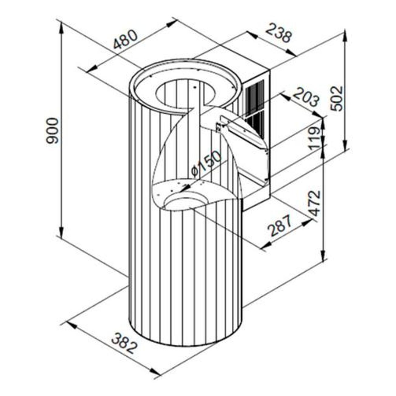 Антивозвратный клапан не дает попасть обратно в комнату загрязненному воздуху. Изделие рассчитано на обслуживание площади до 35 м². Подсветка светодиодными лампочками увеличивает удобство применения. Жироулавливающий фильтр можно снимать для очистки, угольный докупается отдельно. О завершении работы оповещает звуковой сигнал. Можно регулировать яркость освещения, таймером устанавливать время автоотключения. Размер — 48х38,2х90 см, вес — 15,7 кг.