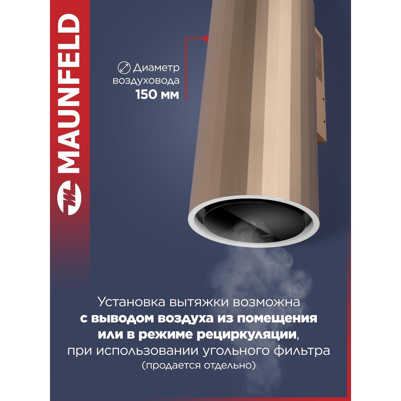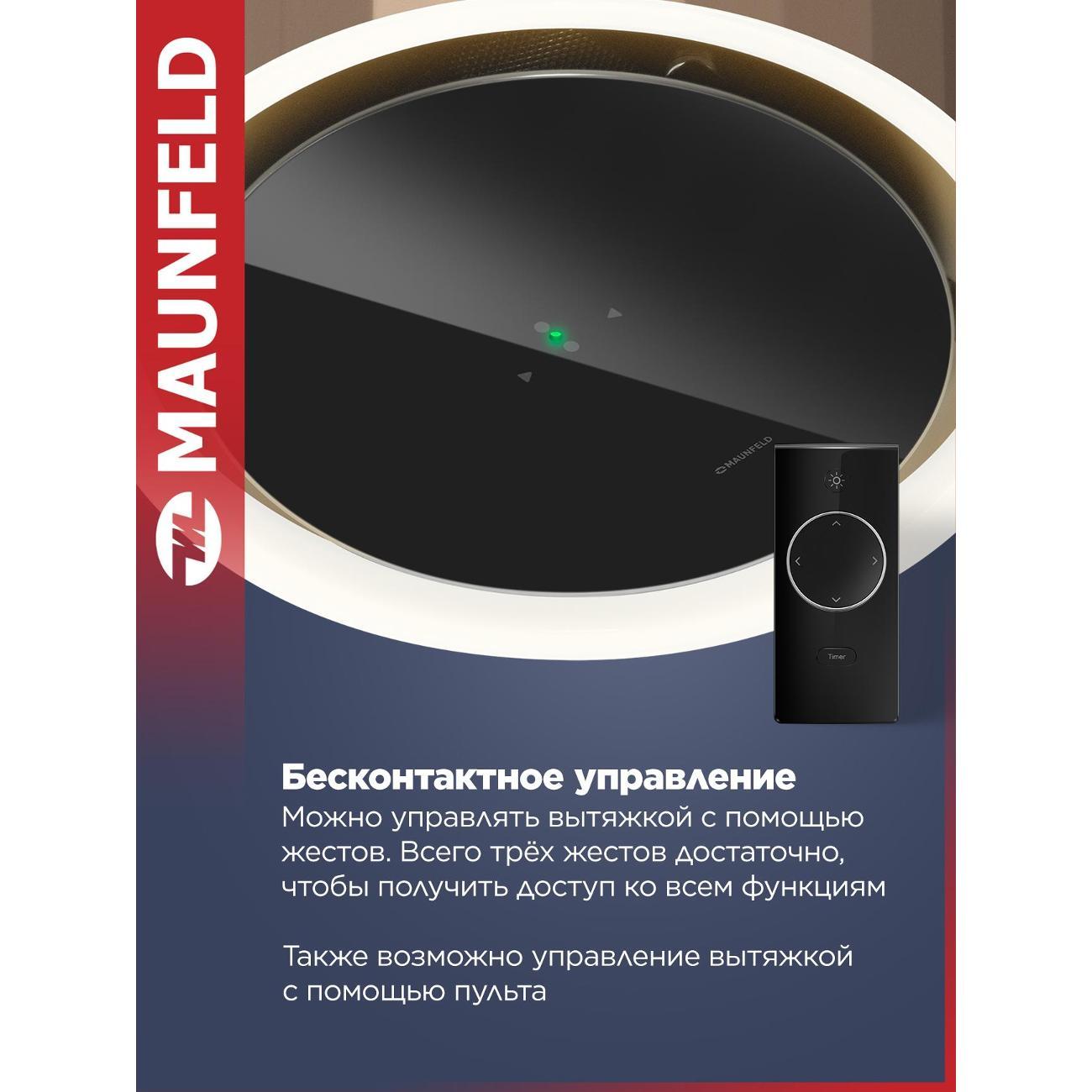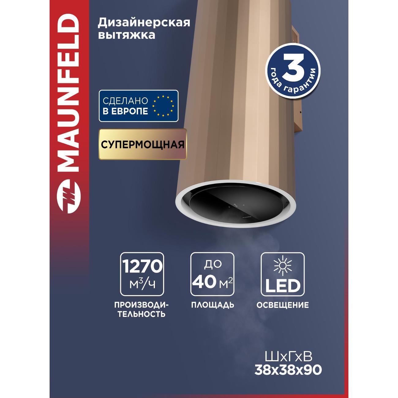 Вытяжка 40 см Maunfeld Adelaide 39 Wall выполнена в дизайнерском стиле, может работать в четырех режимах, обеспечивая производительность до 1270 м³/ч (при отводе). Модель управляется кнопками, пультом ДУ или жестом, что повышает комфорт эксплуатации. Уровень шума не превышает 52 дБ. Предусмотрена установка на штуцер габаритами 120х150 мм.