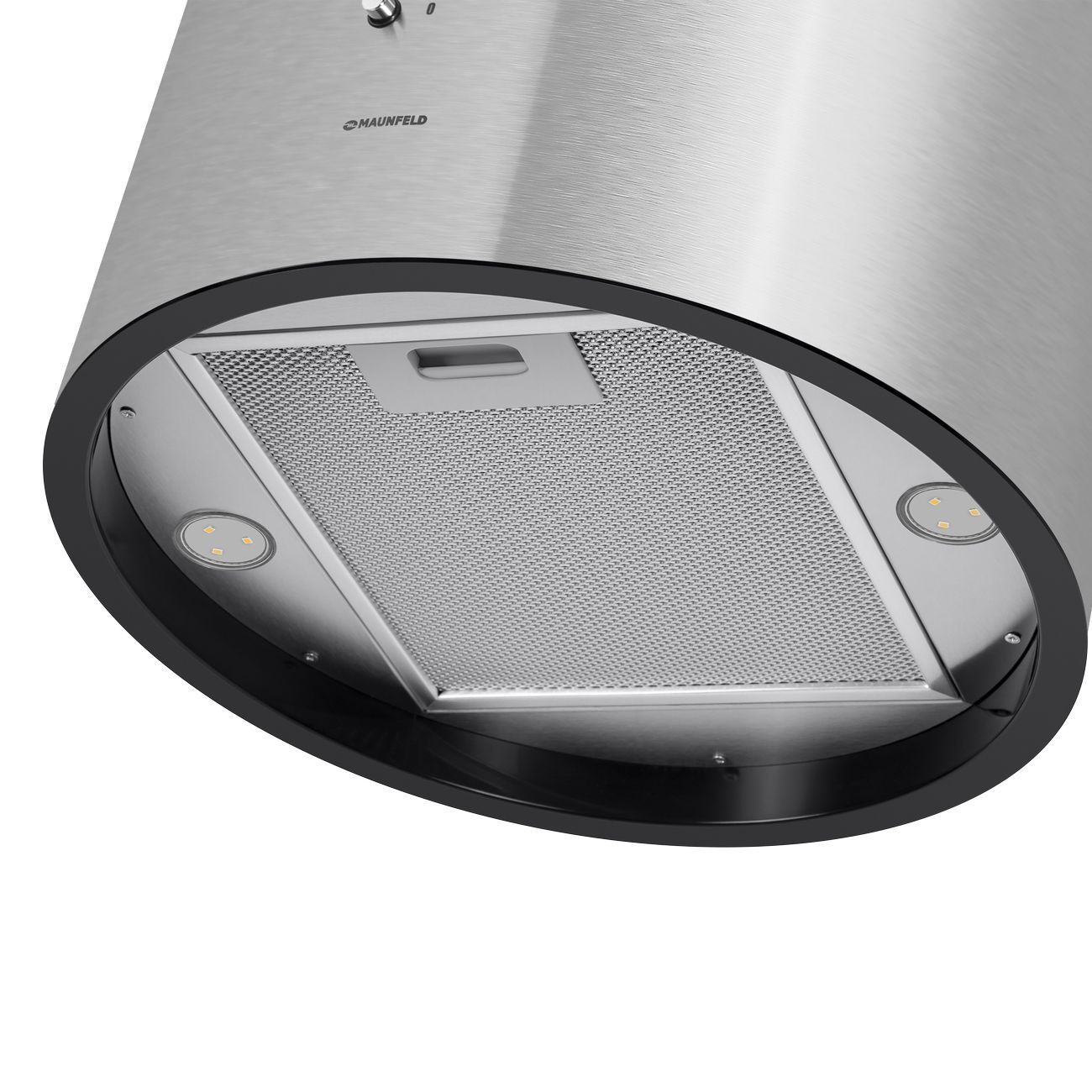Вытяжка Maunfeld Lee Push 39 Inox — модель островного типа цилиндрической формы размером 110х38х38 cм. Монтаж производится на потолок, диаметр воздуховода — 150 мм. Максимальная производительность составляет 1000 куб. м/ч, устройство будет эффективно очищать воздух в помещении площадью до 40 кв. м.