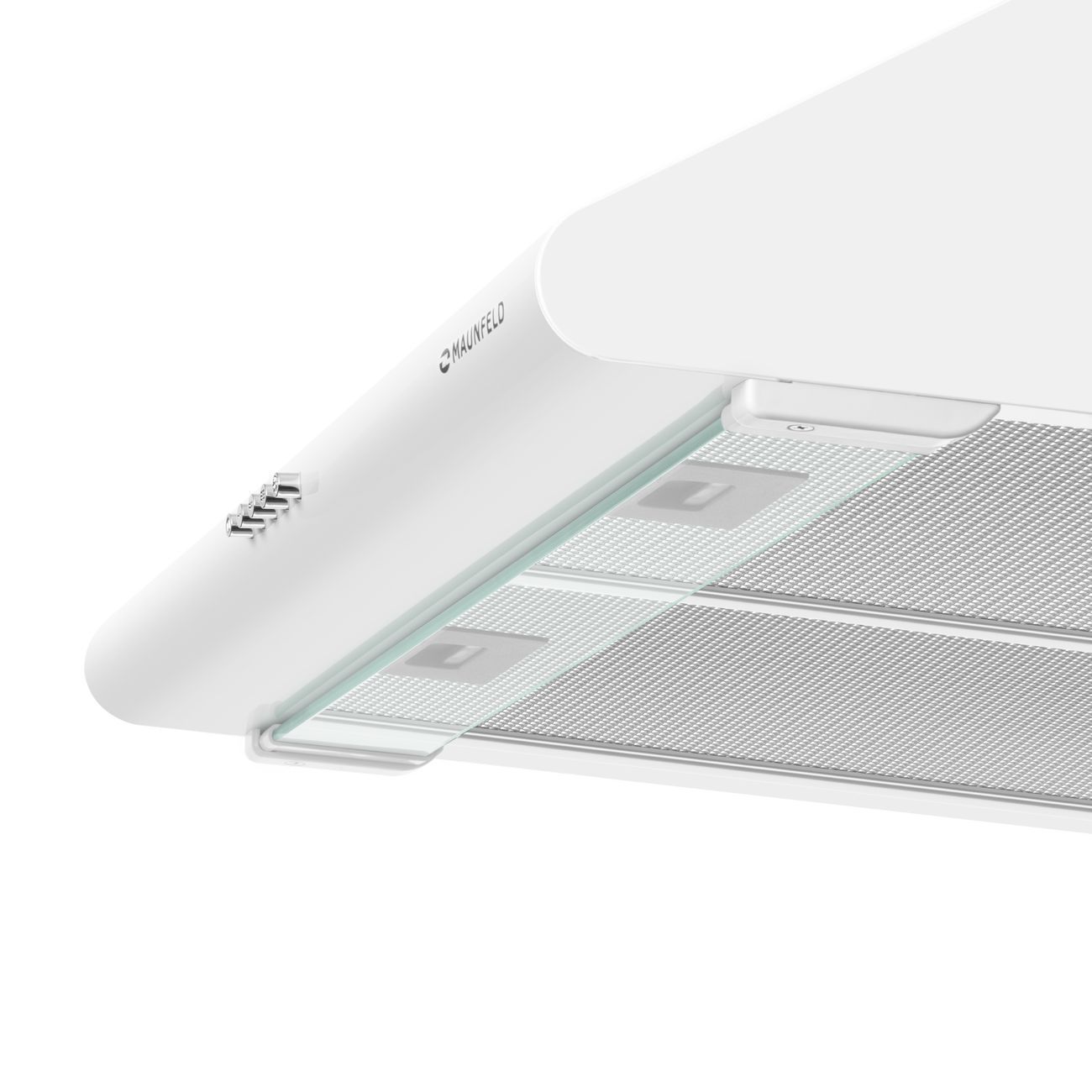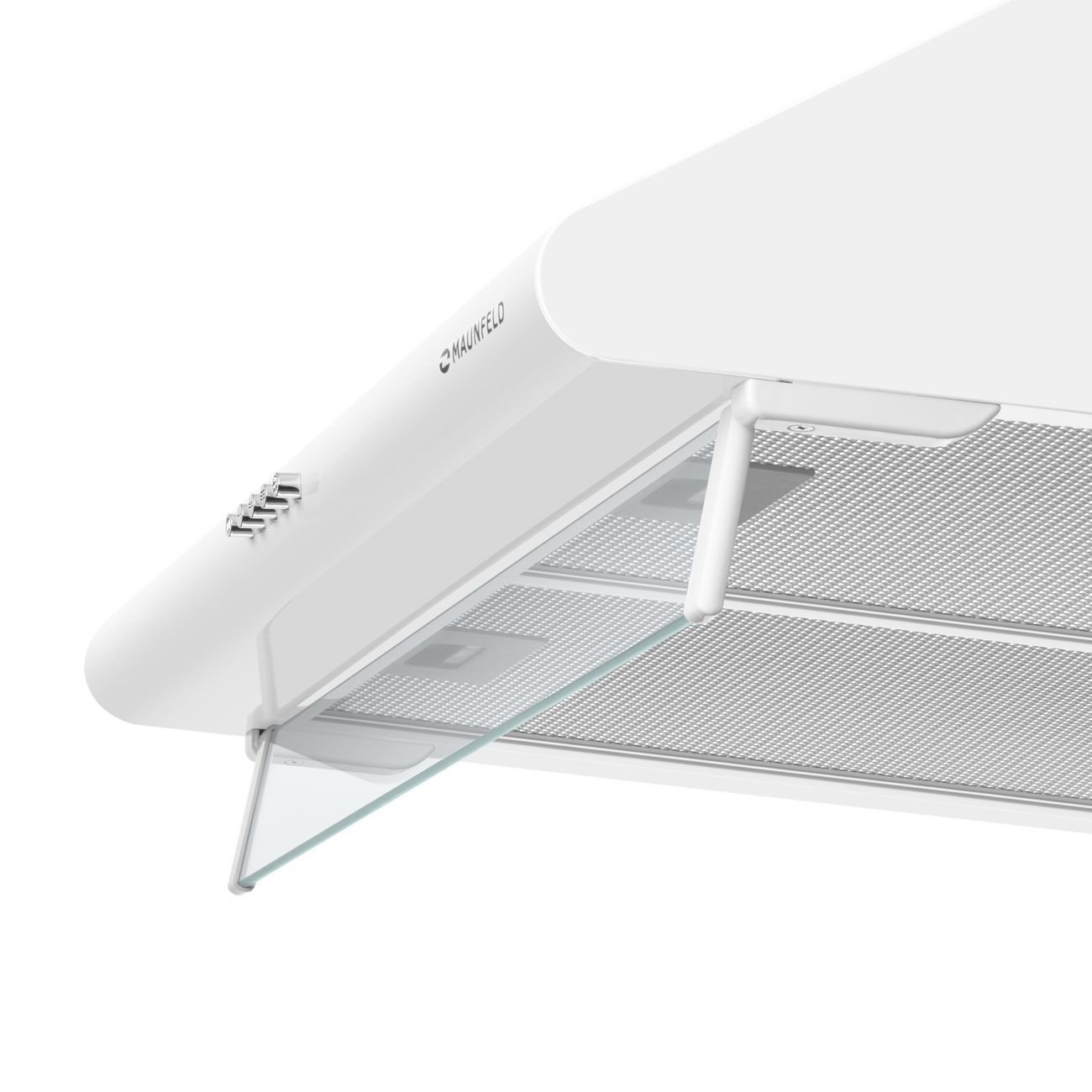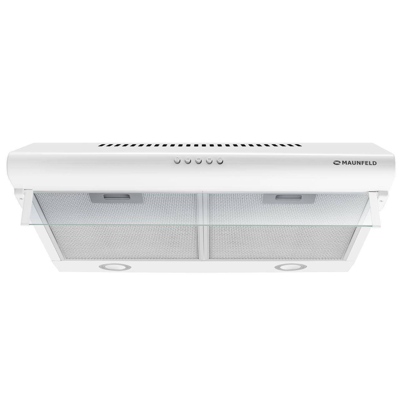 Вытяжка Maunfeld MP-1 50 белого цвета обладает размером 15х50х50 см и потребляет 102 Вт. Вес — 4,5 кг. Диаметр штуцера составляет 15 см. Корпус устройства изготовлен из металла. Работает от сети с помощью шнура длиной 1 м. Благодаря антивозвратному клапану посторонние запахи не попадают в помещение. Скорости работы можно переключать механическим способом.
