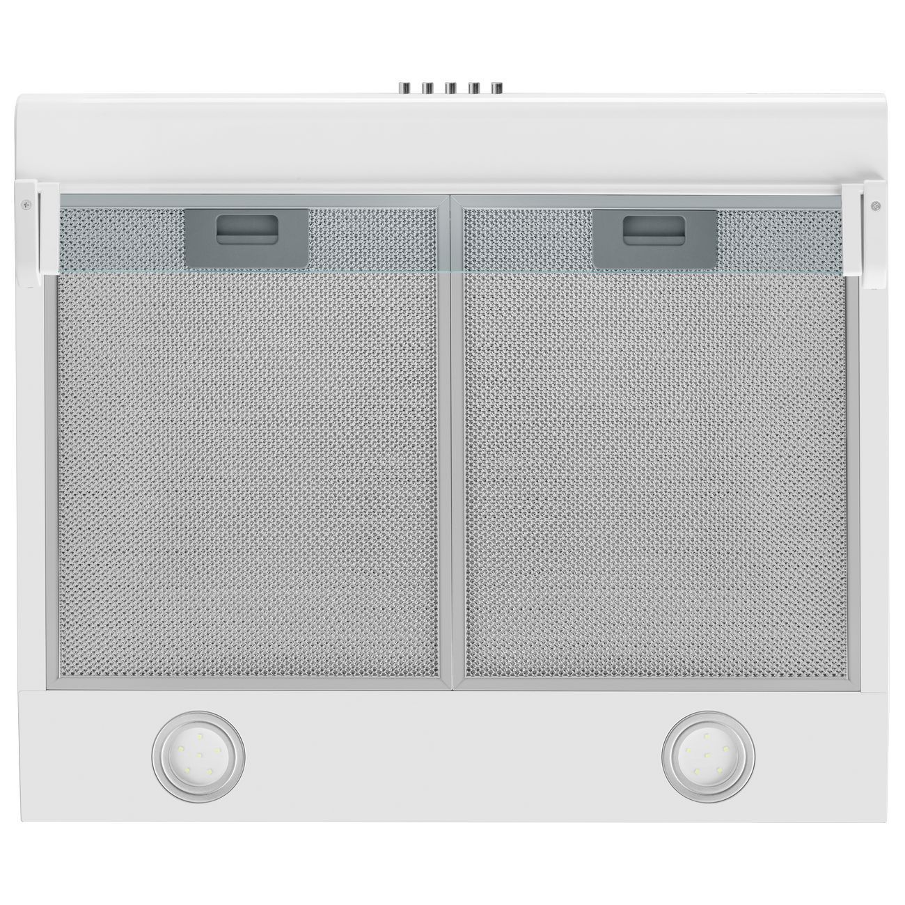 Используется LED-освещение. В комплектации доступен один встроенный жиропоглощающий фильтр. Рекомендуется использовать модель в помещениях площадью до 12 м². Работает в двух режимах — отвод и рециркуляция воздуха. Максимальная производительность устройства — 520 м³/ч. При установке вытяжки над газовой плитой необходима дистанция 75 см, над электрической — 65 см.