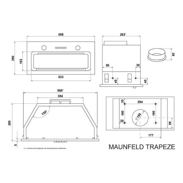 Вытяжка 60 см Maunfeld Trapeze 603EM оборудована электронной панелью управления для регулировки скоростного режима работы. Максимальная производительность модели достигает 1150 м³/ч. Доступен режим рециркуляции. Светодиодные лампы создают дополнительное освещение над варочной поверхностью.