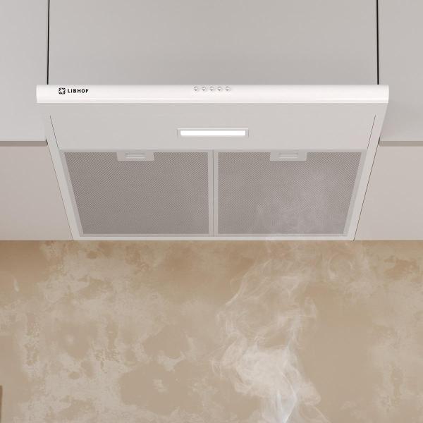 Плоская вытяжка Libhof LF-2550 White обладает габаритами 100x495x495 мм и может работать в двух режимах: отвод воздуха и рециркуляция. Если на кухне есть возможность подключения к вентиляционной шахте, устройство будет удалять загрязненный воздух наружу. Если такой возможности нет, система рециркуляции очистит воздух через фильтры и выпустит обратно уже свежим. Производительность достигает 390 м3/ч в режиме отвода — устройство быстро справляться с чадом, запахами и продуктами горения, охватывая площадь до 14 м².