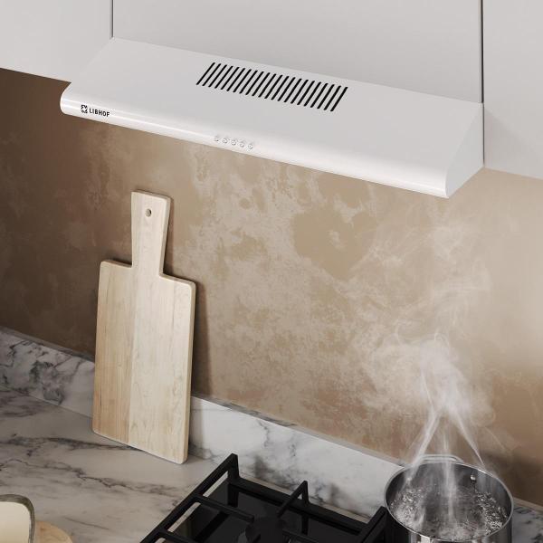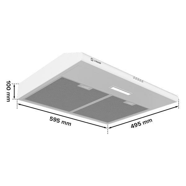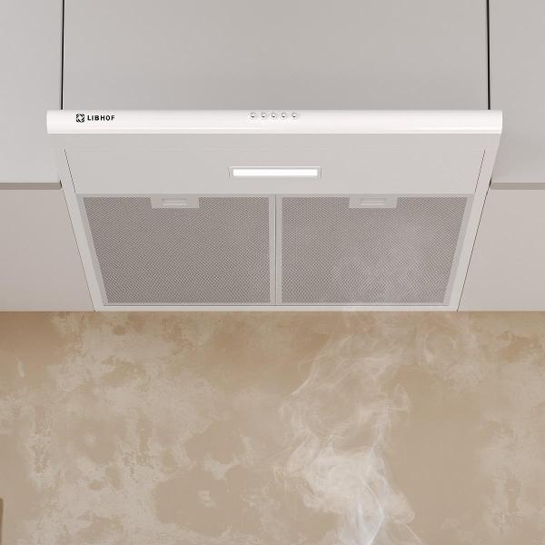 Плоская вытяжка Libhof LF-2560 White обладает габаритами 100x595x495 мм и может работать в двух режимах: отвод воздуха и рециркуляция. Если на кухне есть возможность подключения к вентиляционной шахте, устройство будет удалять загрязненный воздух наружу. Если такой возможности нет, система рециркуляции очистит воздух через фильтры и выпустит обратно уже свежим. Производительность достигает 390 м3/ч в режиме отвода — устройство быстро справляться с чадом, запахами и продуктами горения, охватывая площадь до 14 м².