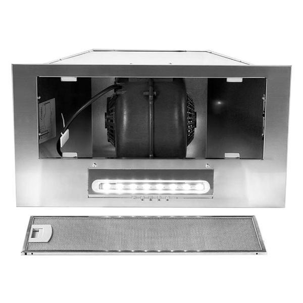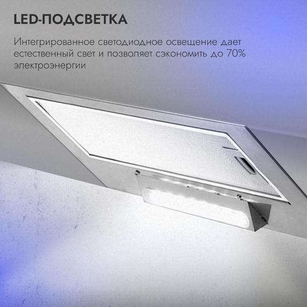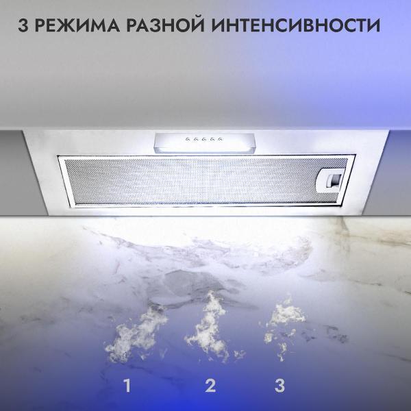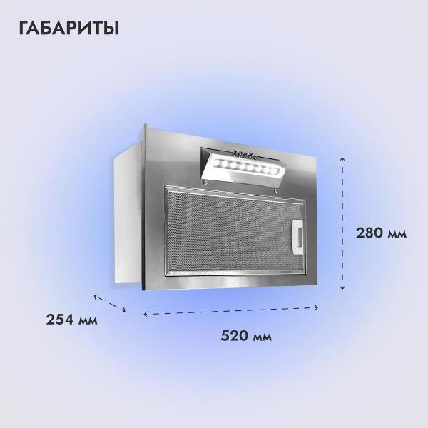 Вытяжка Delvento DLV51M1 — полностью встраиваемое устройство. Модель обеспечивает отвод и рециркуляцию воздуха. Для управления скоростью на нижней части расположены кнопки. Есть светодиодное освещение.