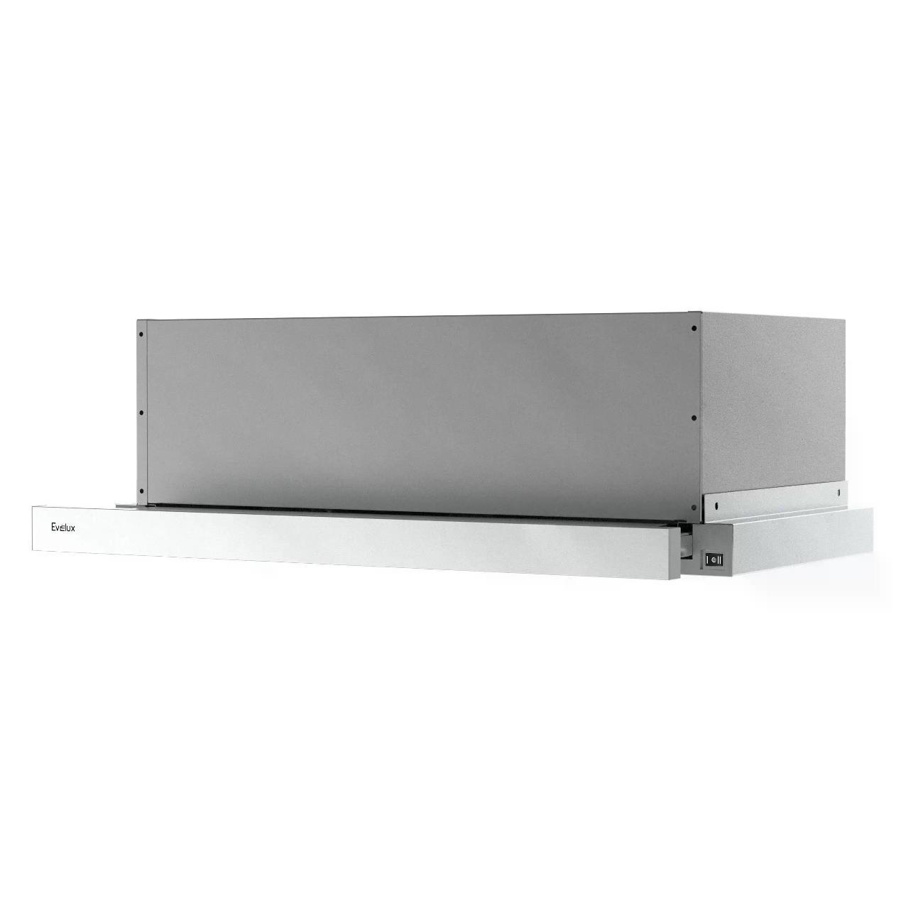 Вытяжка полностью встраиваемая Evelux TEL 60 X — скрытая модель для монтажа в навесной шкаф. Устройство работает в двух режимах: отвод воздуха наружу и рециркуляция с фильтрацией.