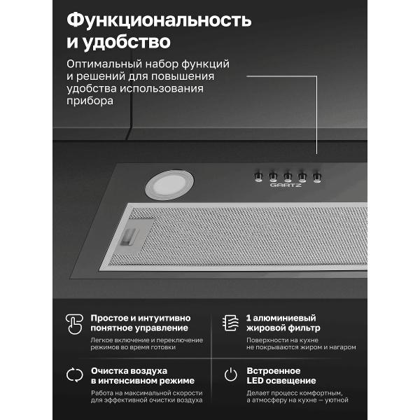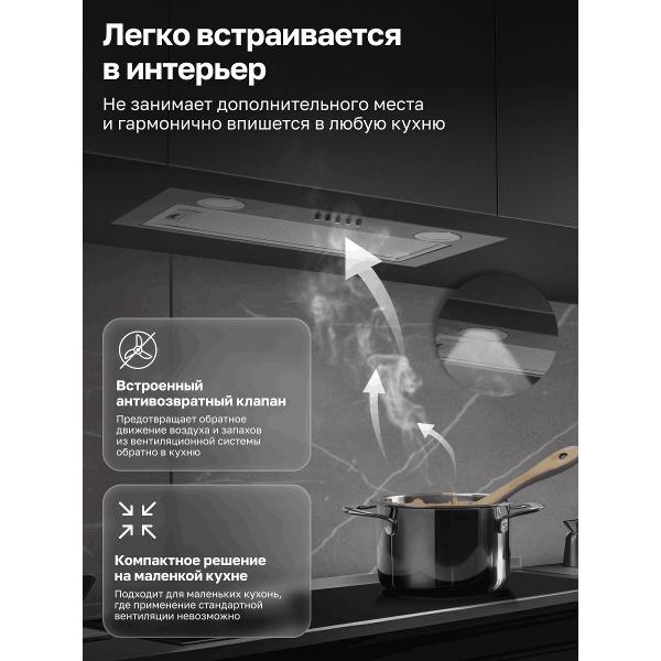 Дизайн простой, универсальный, вписалась в нашу среднюю по размеру кухню, как родная. Удобная в управлении, пока стою у плиты, руку протянула, все включила и настроила. очень работоспособная, не думает. Как только включили ее, моментально начала гонять воздух. Подсветкой пользуюсь постоянно, даже когда вытяжка не работает. И шум даже ниже, чем ожидали.