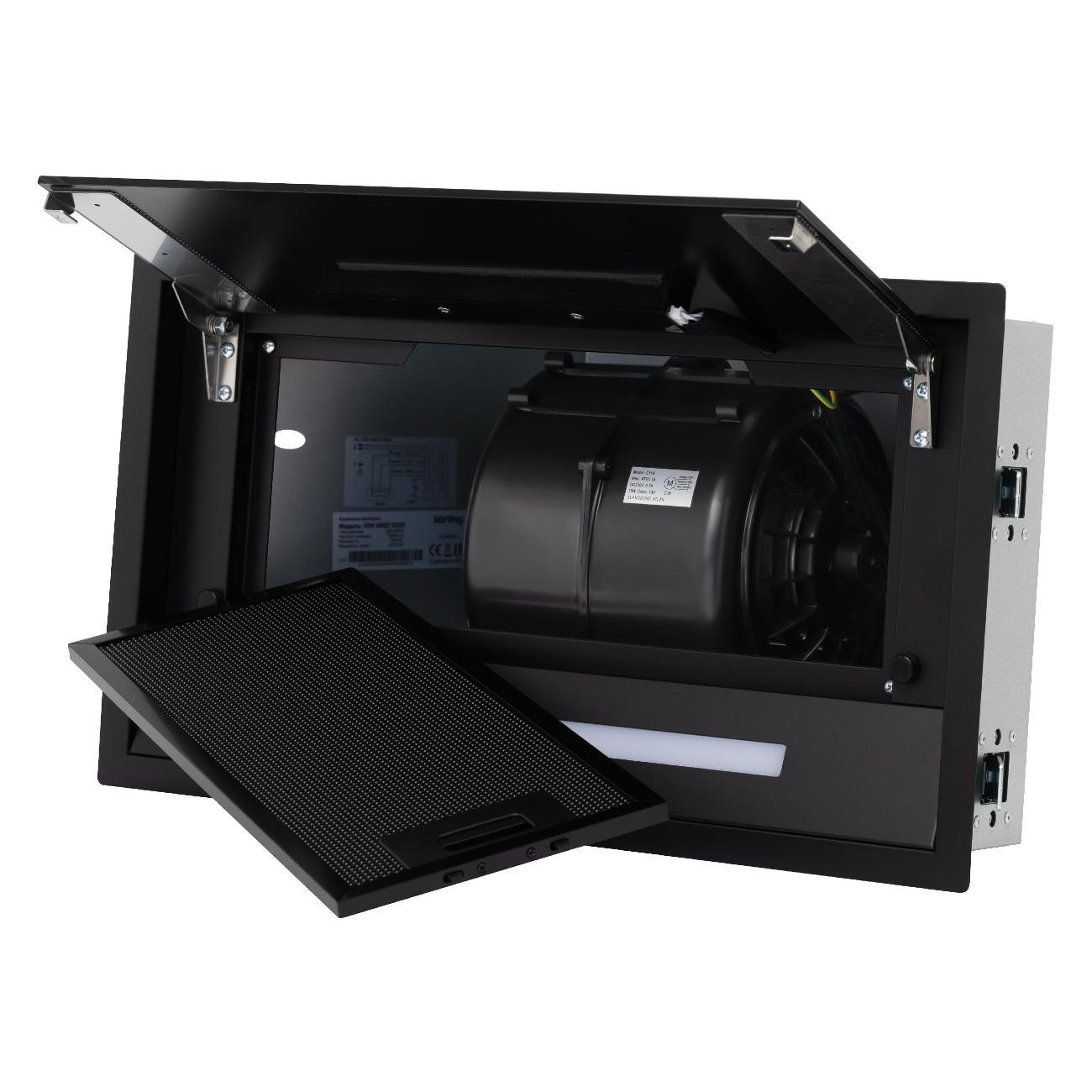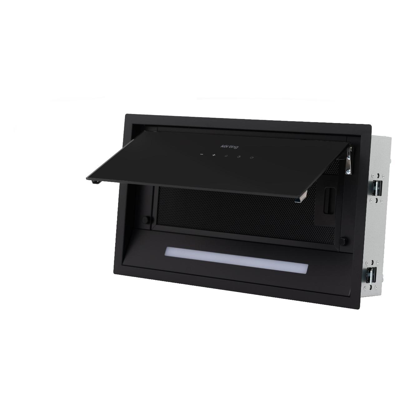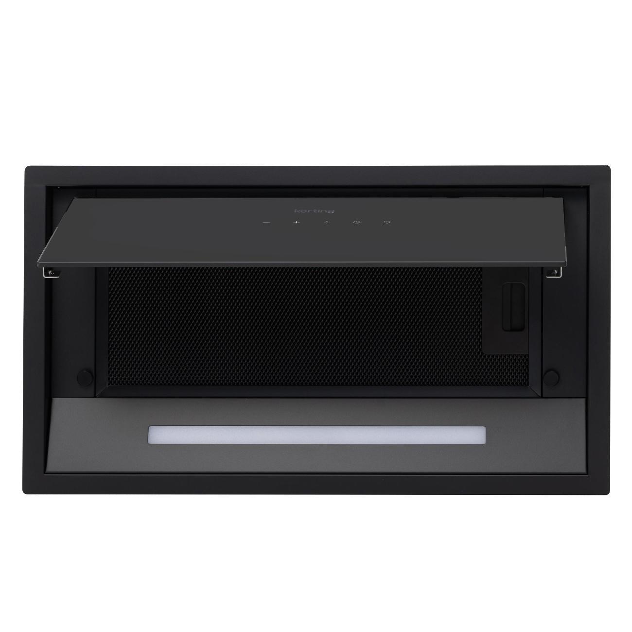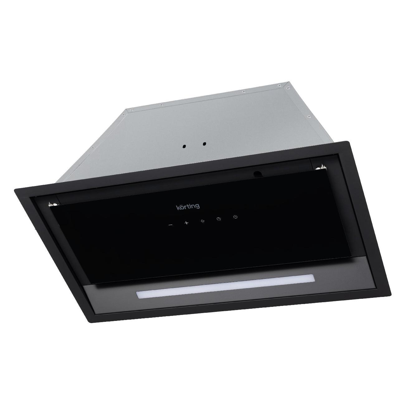 Вытяжка полностью встраиваемая Korting KHI 6892 DGN с черным стеклянным фасадом монтируется в кухонный гарнитур, сохраняя стиль интерьера. Корпус выполнен из металла и закаленного стекла — материалов, устойчивых к деформации, повреждениям, простых в уходе.