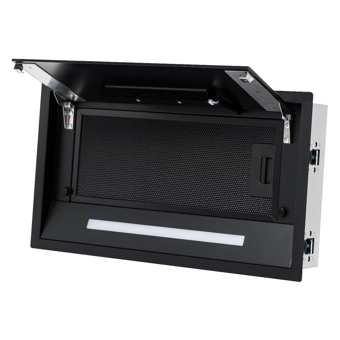 Максимальная производительность в режиме отвода воздуха достигает 900 м³/ч, в режиме рециркуляции — 700 м³/ч, что позволяет быстро устранять запахи, пар и жирные взвеси. Устройство поддерживает свежую атмосферу на кухне площадью до 29 м².