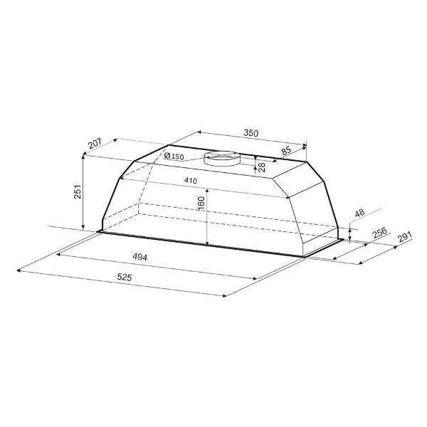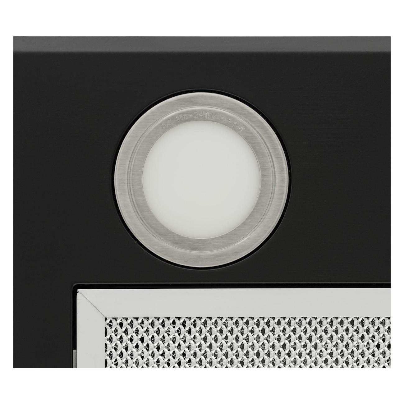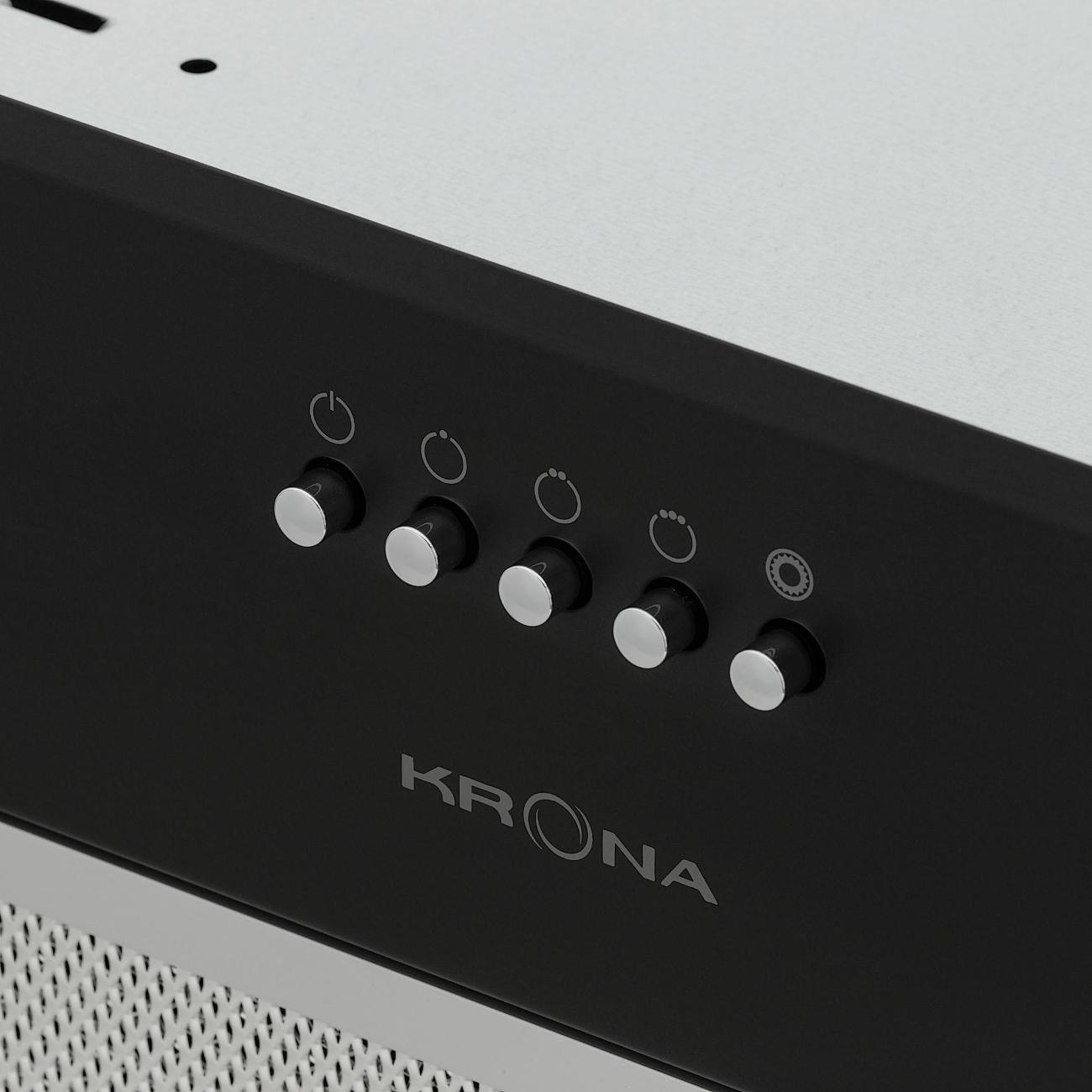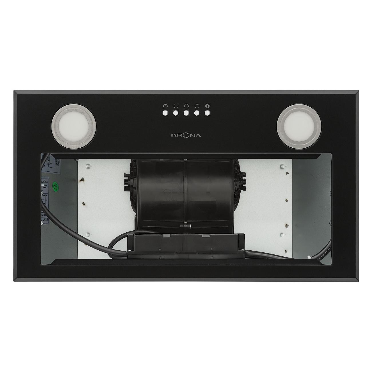 Вытяжка Krona Asta 600 Black PB — модель, полностью встраиваемая в кухонный шкаф, рассчитанная на эффективную работу в кухне или столовой площадью до 11 м².