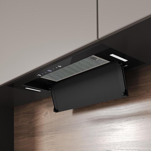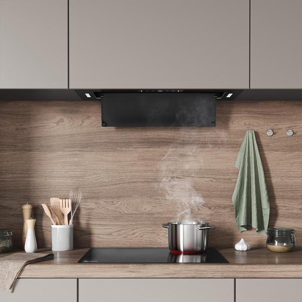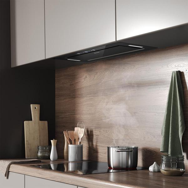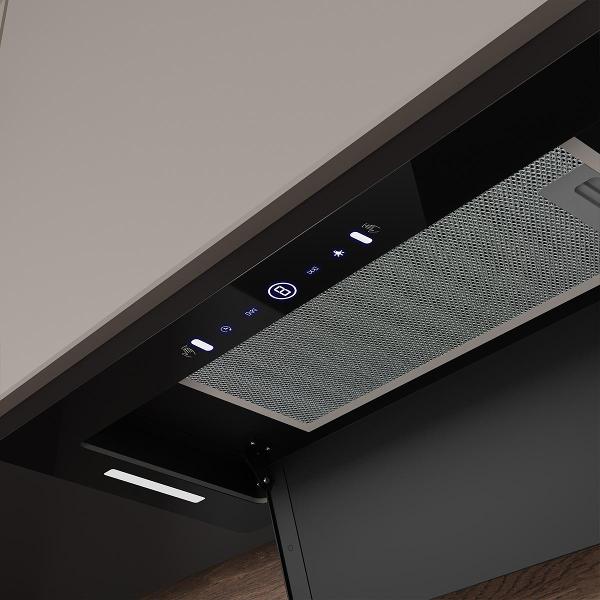 Главная особенность этой вытяжки так это то, что она полностью встраиваемая. И это никак не повлияло на производительность, а вот шумит несильно. В управлении проста как табуретка, хоть и навороченная.